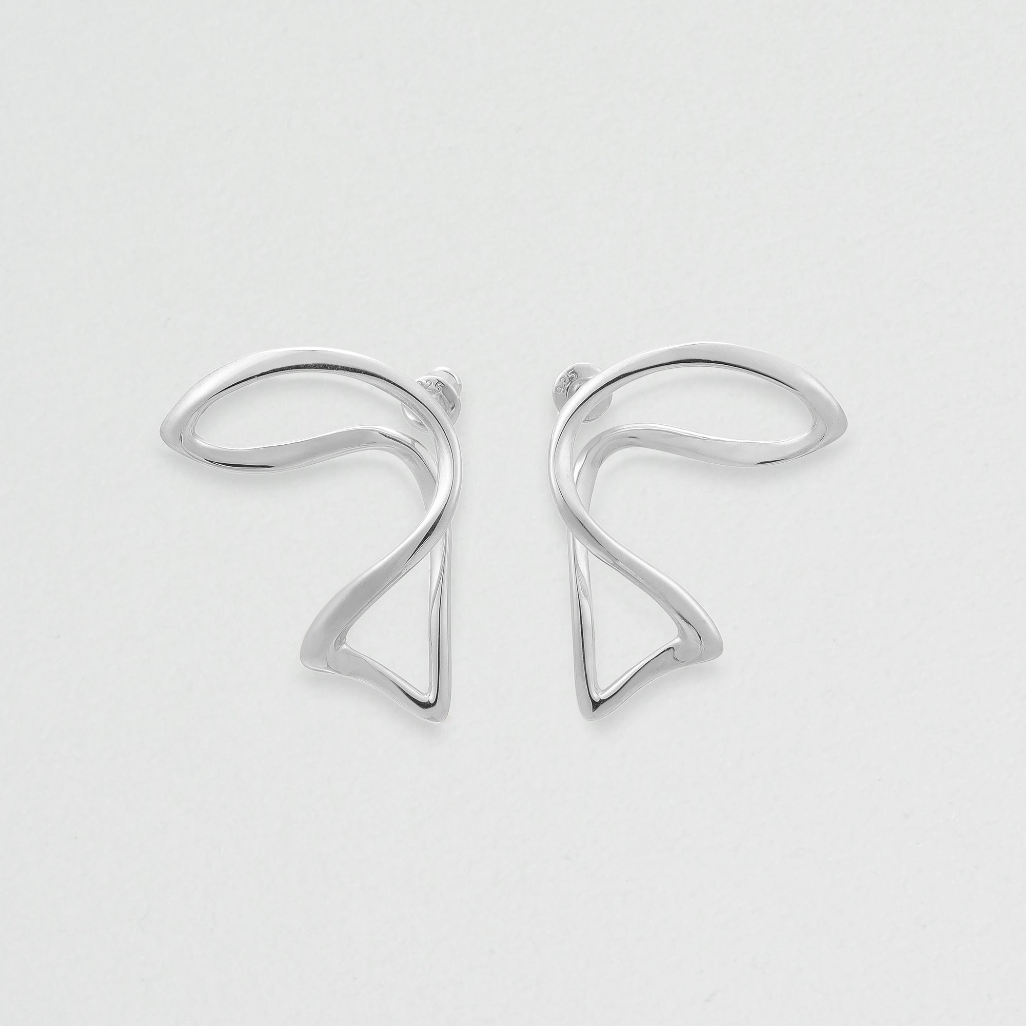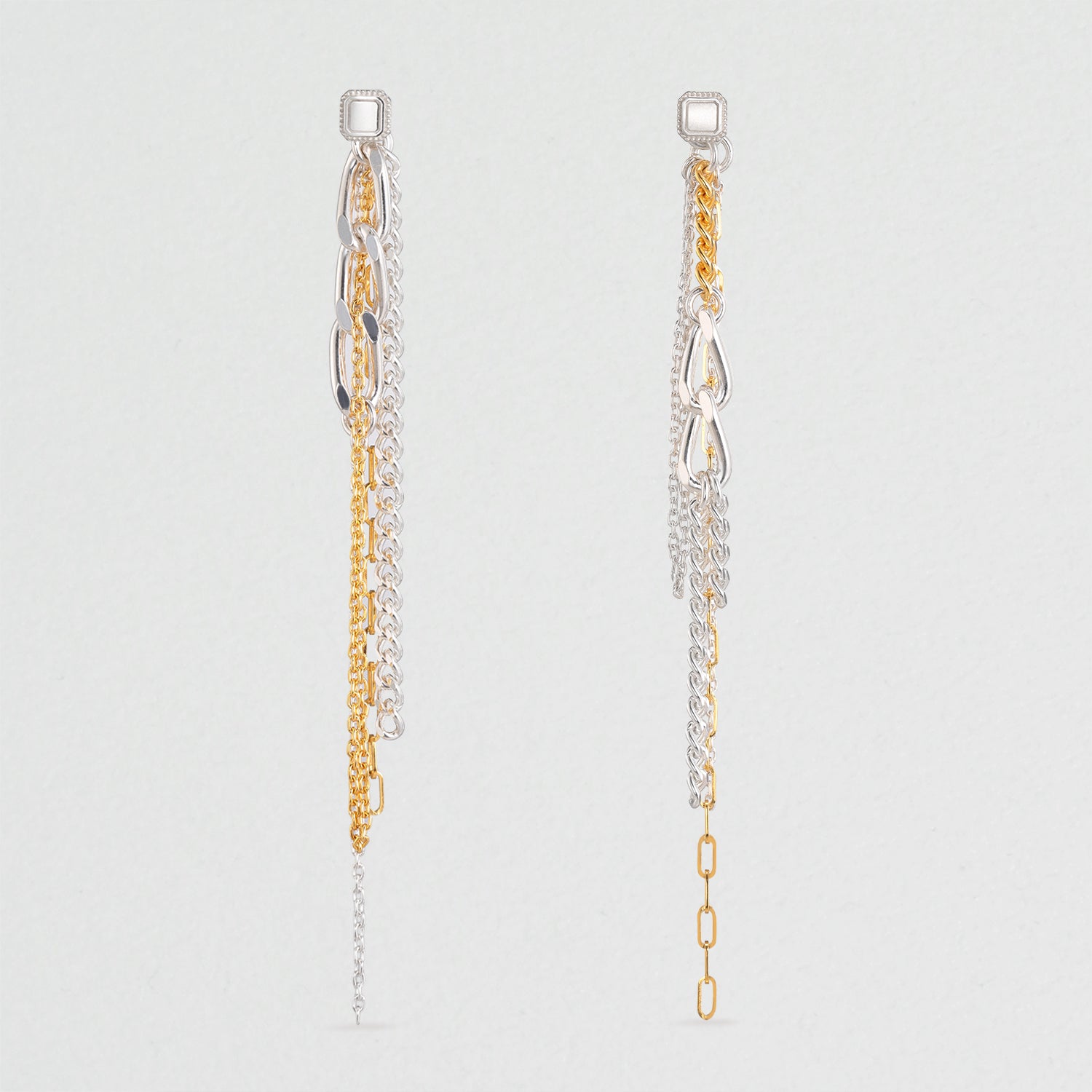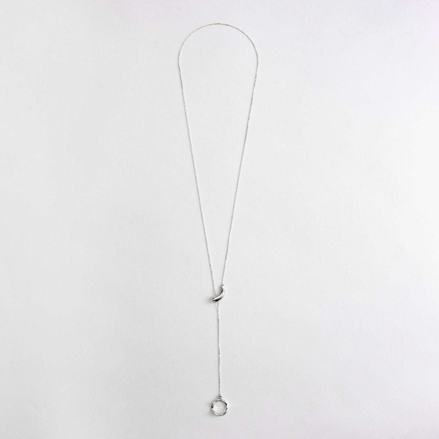 自由に泳ぐ二匹の魚をイメージした、リラクシングムードあふれるコードネックレスとモダンな地金のピアス。