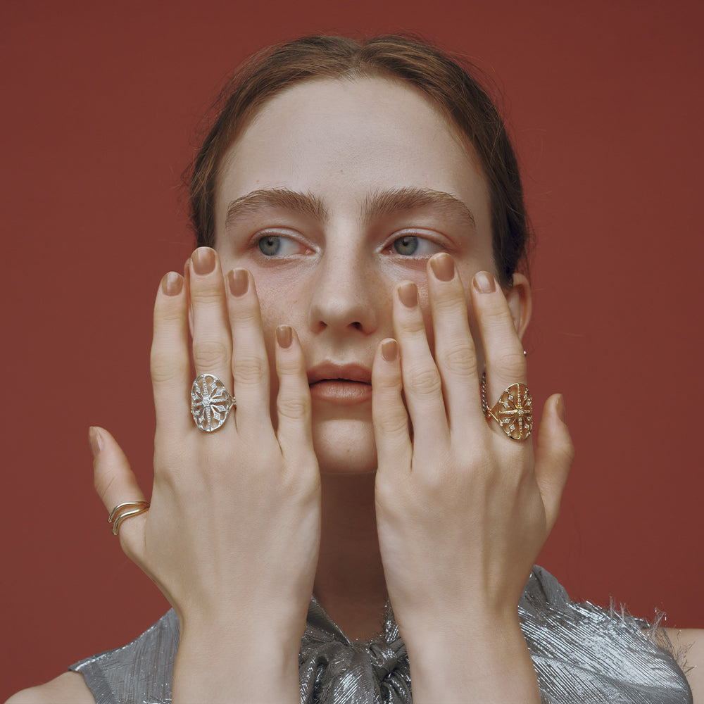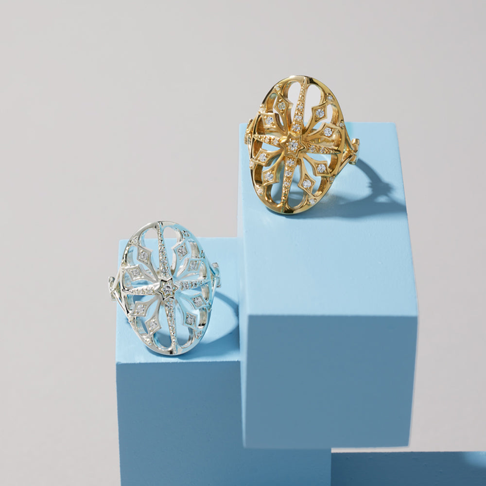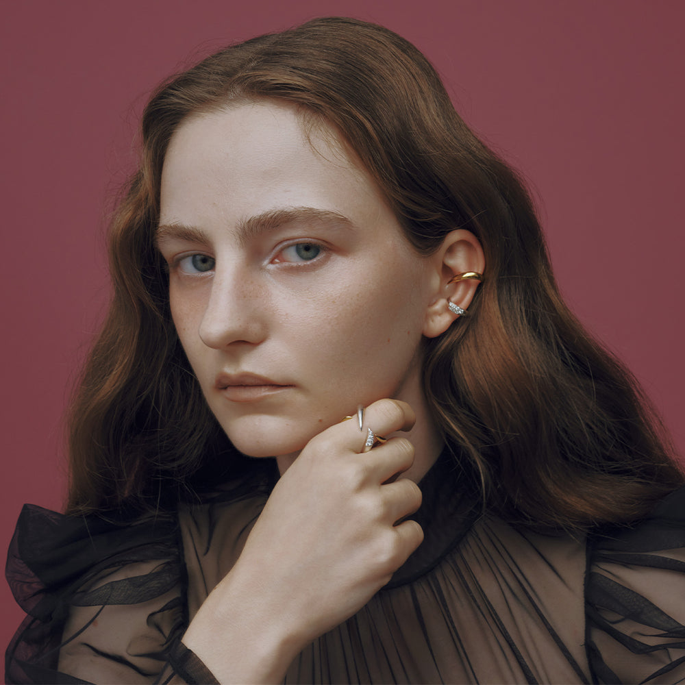 うお座の神話を重ね合わせることで、シンプルながら唯一無二の存在感を放つジュエリーに。
