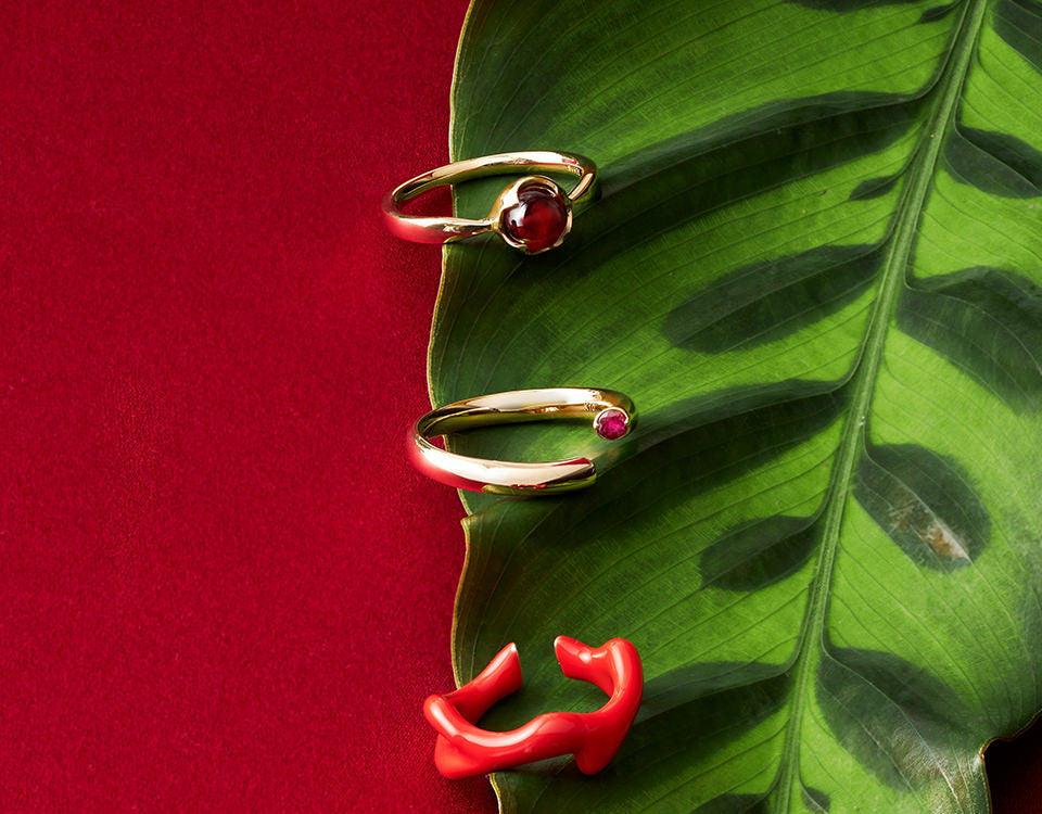 つややかに光るひとすじのラインが美しく指に巻きつくリング。斜めにカットされた断面には燃えるように輝くルビーをあしらい、シンプルなフォルムの中にも情熱的な光を宿します。反対側の断面に刻まれた牡羊座のサインは自分だけのタリスマン。隠された部分にデザインすることで牡羊座の持つ情熱とエネルギーを内に秘めるお守りのような存在に。リングの内側も丸く丁寧に仕上げた作りは驚くほど着け心地が良く、しっとりと指に吸い付くよう。