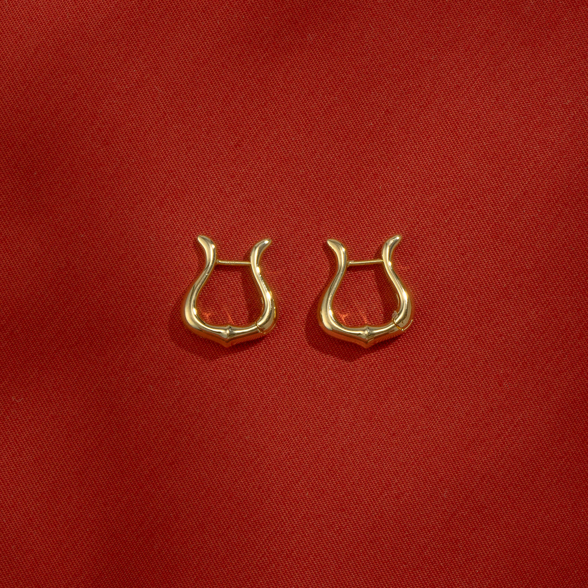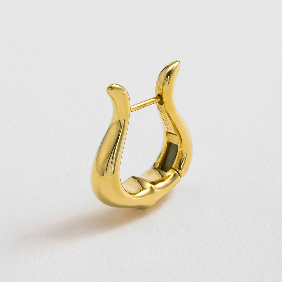 ホーンモチーフのミニフープピアスはキャッチレス仕様でどこから見ても洗練された美しいフォルムにこだわりました。マスク着用時でもスムーズな着け心地です。さりげなく存在感のある曲線とサイズ感でどんなコーディネートにもマッチし、上品なゴールドカラーが耳元を明るく照らしてくれます。