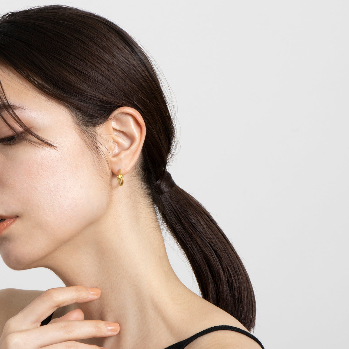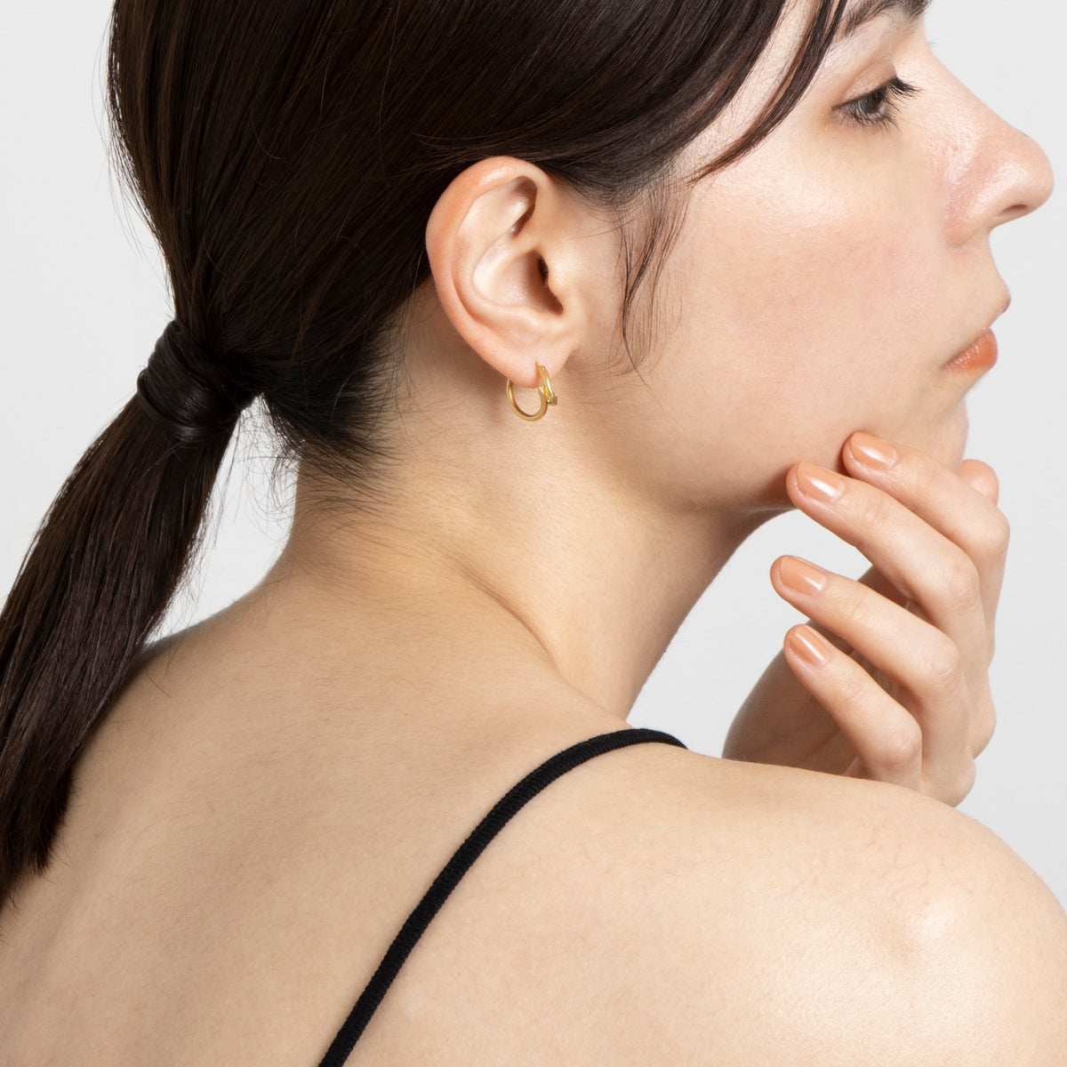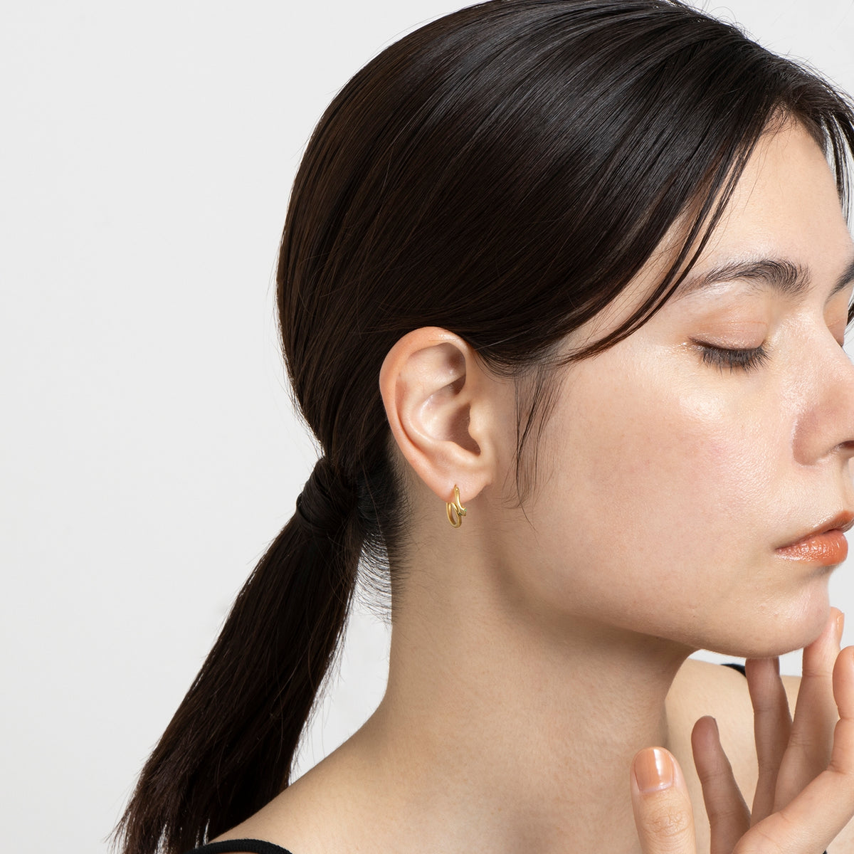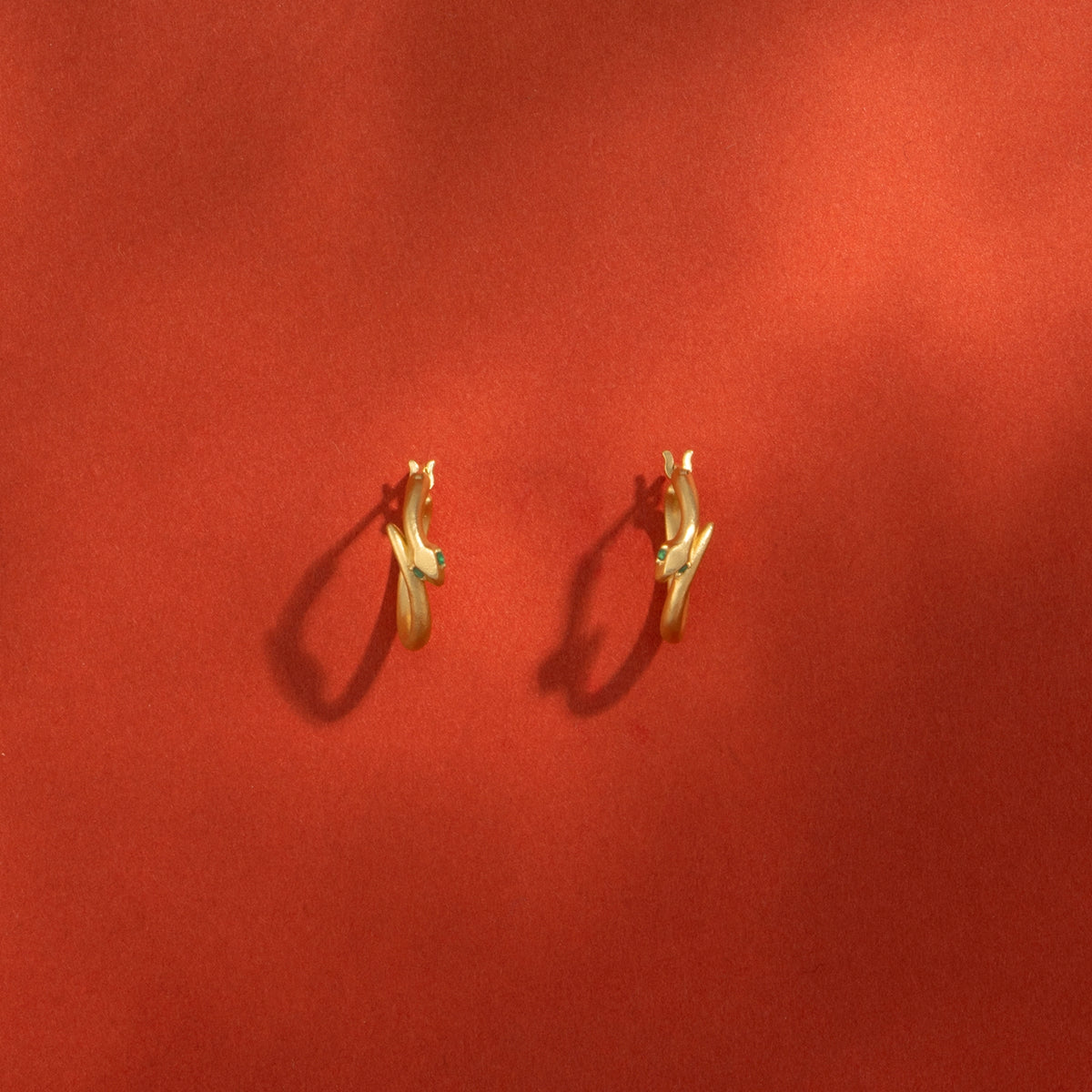 金色に輝く蛇がお守りのように耳元に寄り添うフープピアス。両目には鮮やかな発色が美しいエメラルドをあしらい、その透明感溢れるグリーンの光が優しい表情をたたえています。古来より幸運や永遠の象徴とされてきた蛇モチーフ。金運や健康のお守りとしても人気のあるモチーフです。