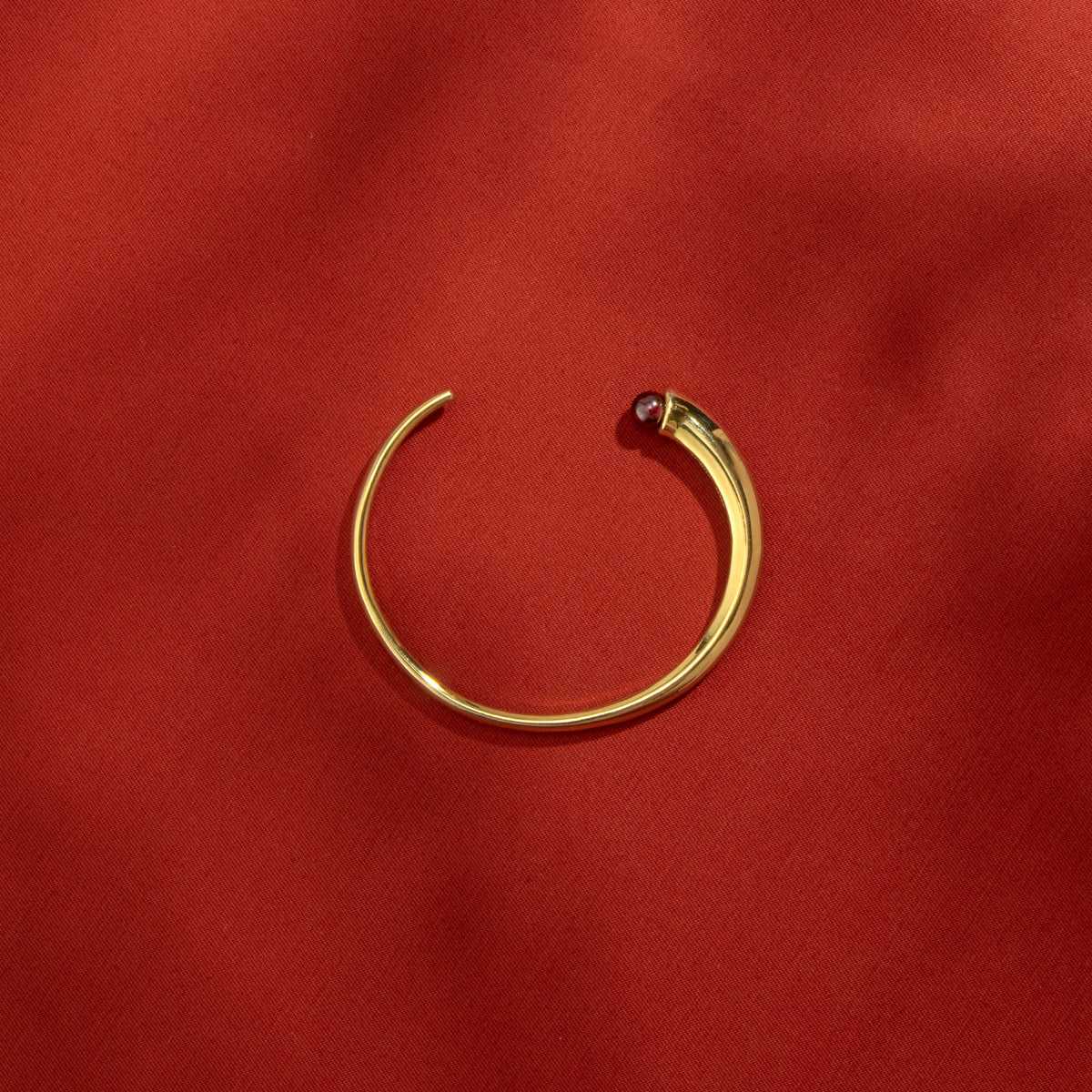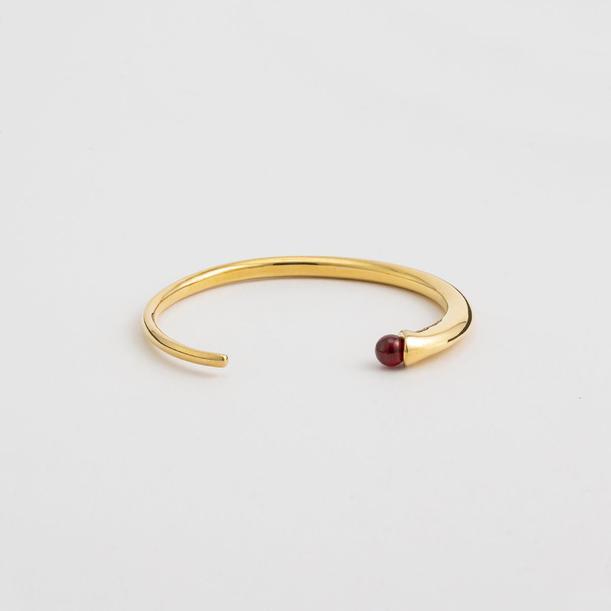 地金を贅沢に使用したプリミティブなムードのホーンモチーフバングル。バングルは太古の時代から存在し、骨や石、木など自然の素材を装身具として身につけたのが始まりといわれています。レイヤードすることでいにしえの装身具のように神秘的なムードに。上品なゴールドコーティングカラーは明るく手元を照らしてくれます。