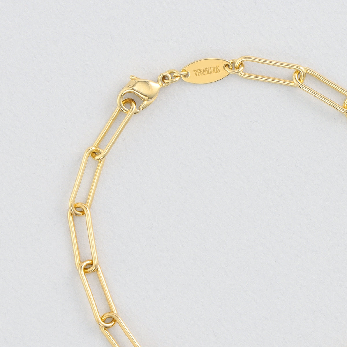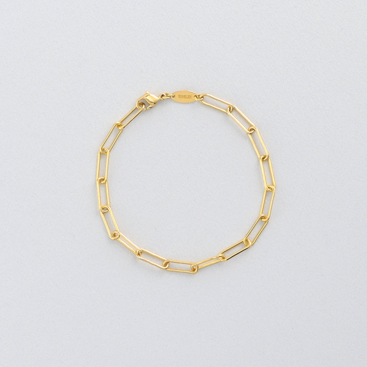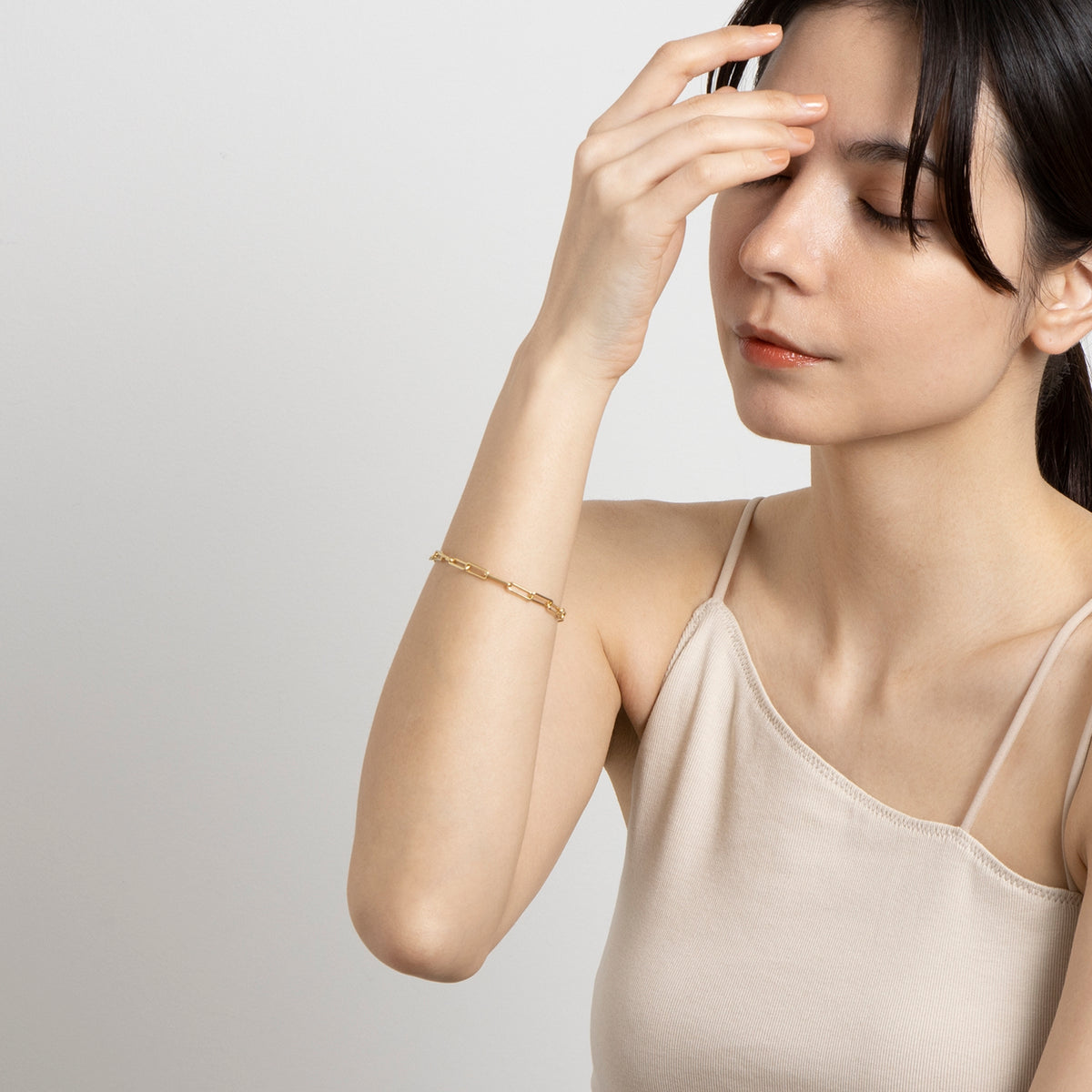 ボリューム感がありながら軽やかな柔らかさを感じさせてくれる、1本で着け映えのするチェーンブレスレット。 別売りのチャームと組み合わせて自分だけのアレンジを楽しめます。ややゆとりのある19cmに設定していますが、お好きな位置のコマで着用いただくことで長さ調整が可能です。先端のコマにチャームを下げるアレンジもおすすめ。