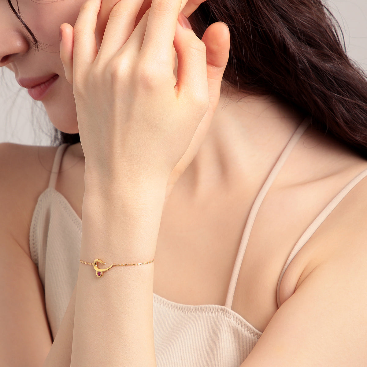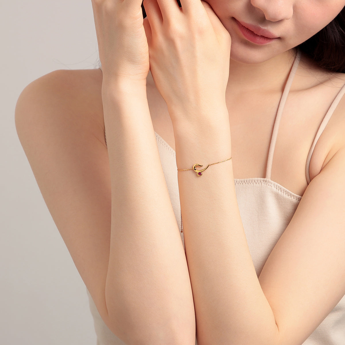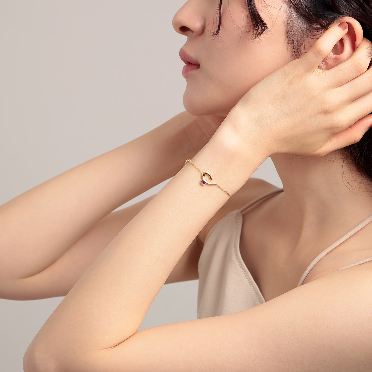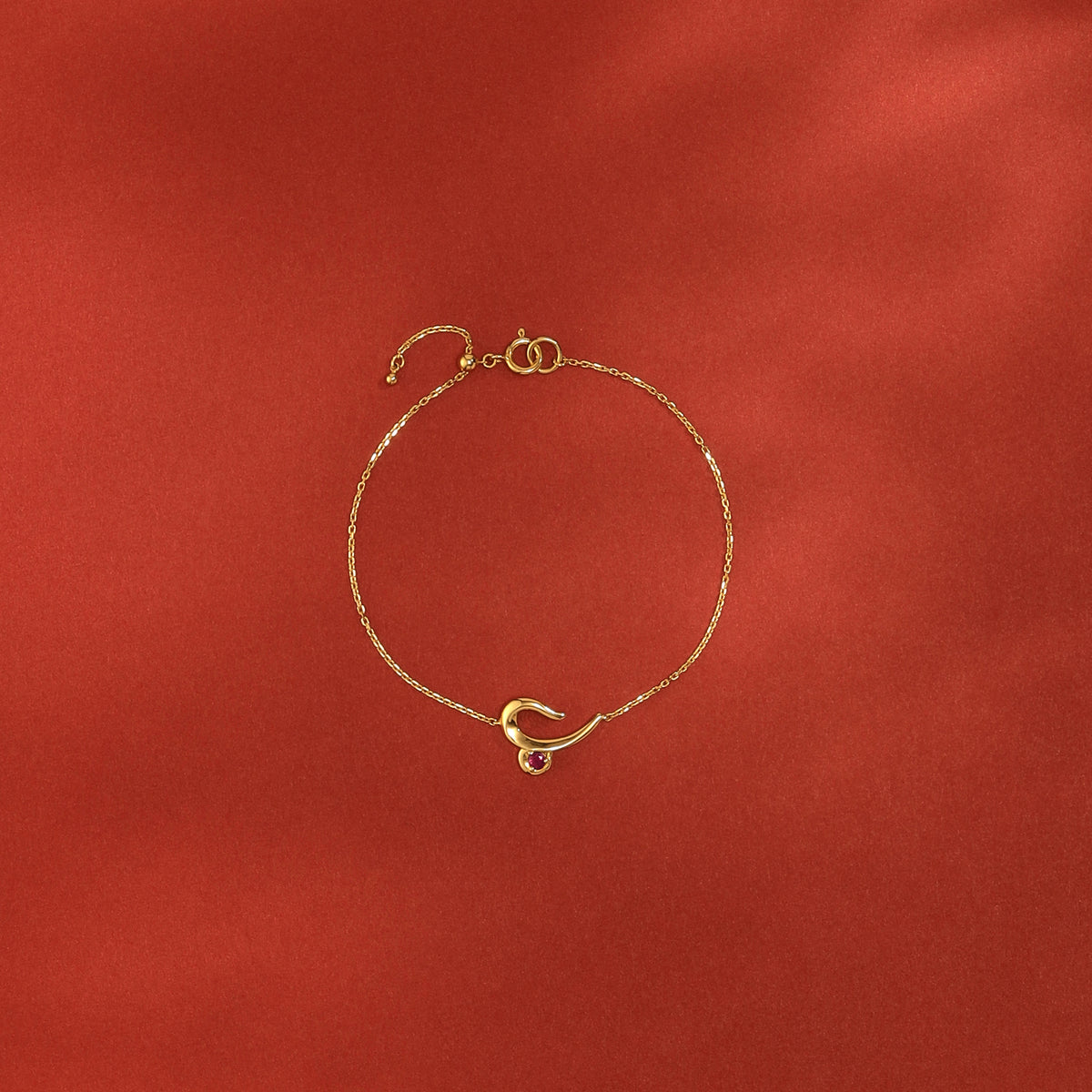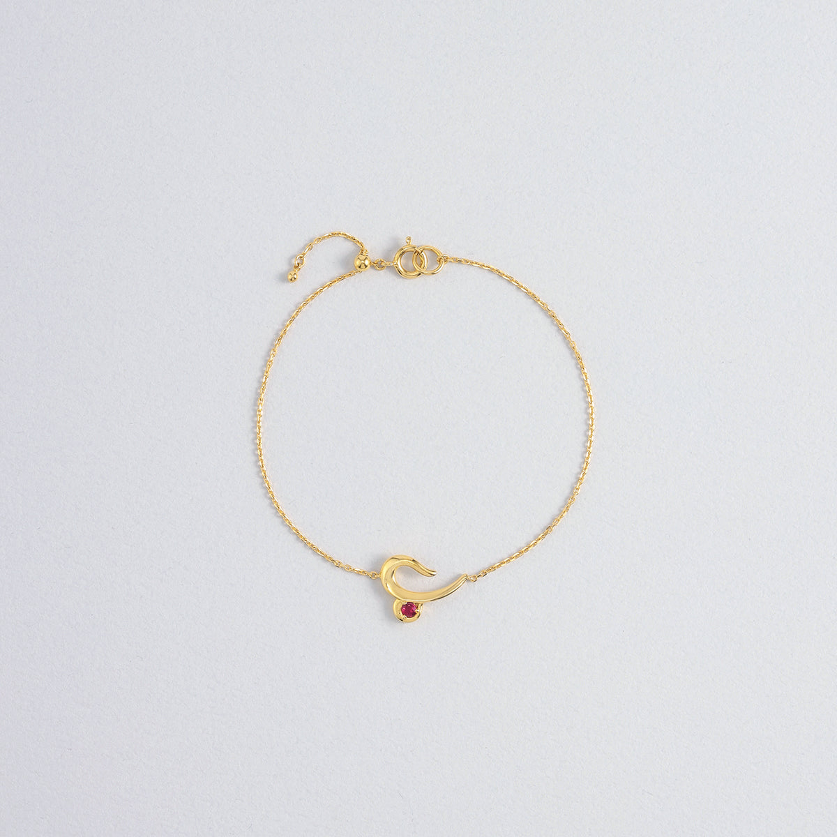 おひつじ座の星座記号をアレンジしたモチーフが、お守りのように手元に寄り添うブレスレット。ドラマティックな陰影を生み出す艶やかに磨き上げられた地金に、情熱の象徴である鮮やかなルビーをセッティング。手首に沿うようにわずかにカーブをつけたデザインと、スライドアジャスター付きのチェーンで、手首に心地よくフィットする仕立てに。内なるアンデンティティを表す12星座が、ふと手元を見た時にも心を彩り、コーディネートに印象的な輝きをもたらします。