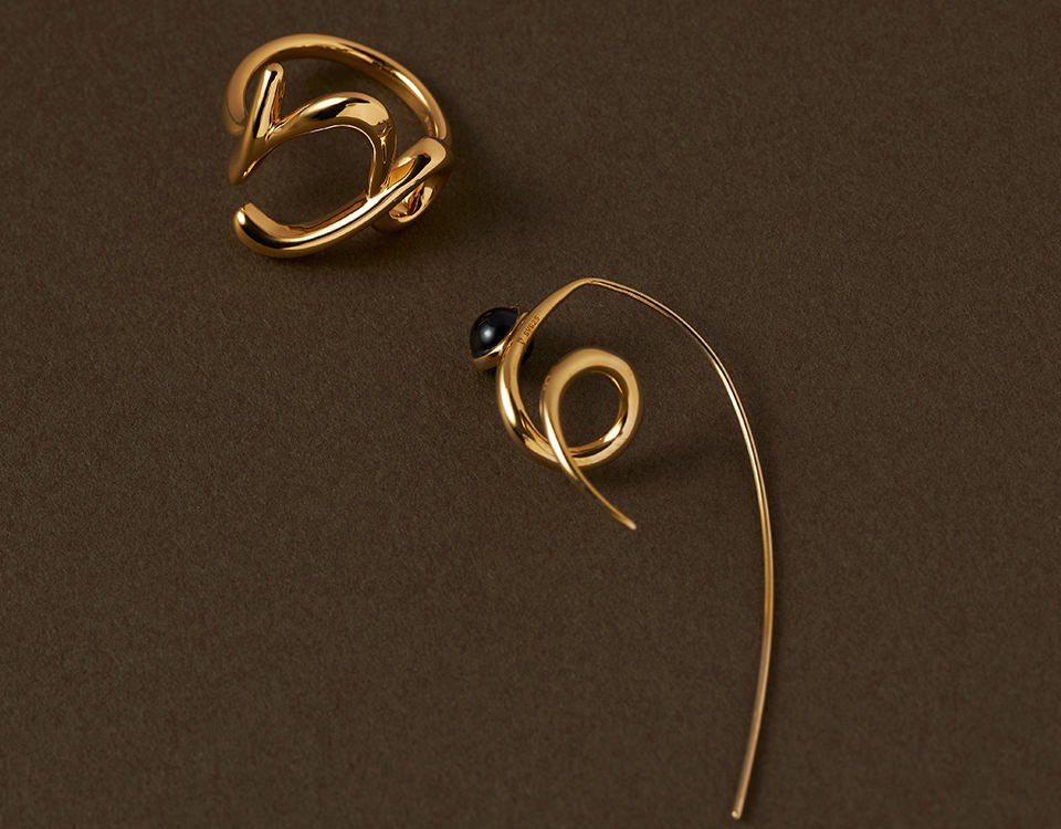 やぎ座の星座記号をアレンジしたモチーフが、お守りのように手元に寄り添うブレスレット。ドラマティックな陰影を生み出す艶やかに磨き上げられた地金に、不屈の象徴である漆黒のブラックダイヤモンドをセッティング。手首に沿うようにわずかにカーブをつけたデザインと、スライドアジャスター付きのチェーンで、手首に心地よくフィットする仕立てに。内なるアンデンティティを表す12星座が、ふと手元を見た時にも心を彩り、コーディネートに印象的な輝きをもたらします。