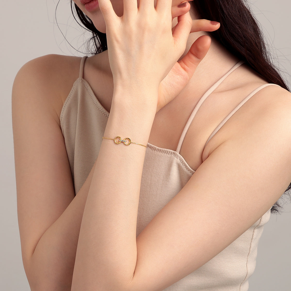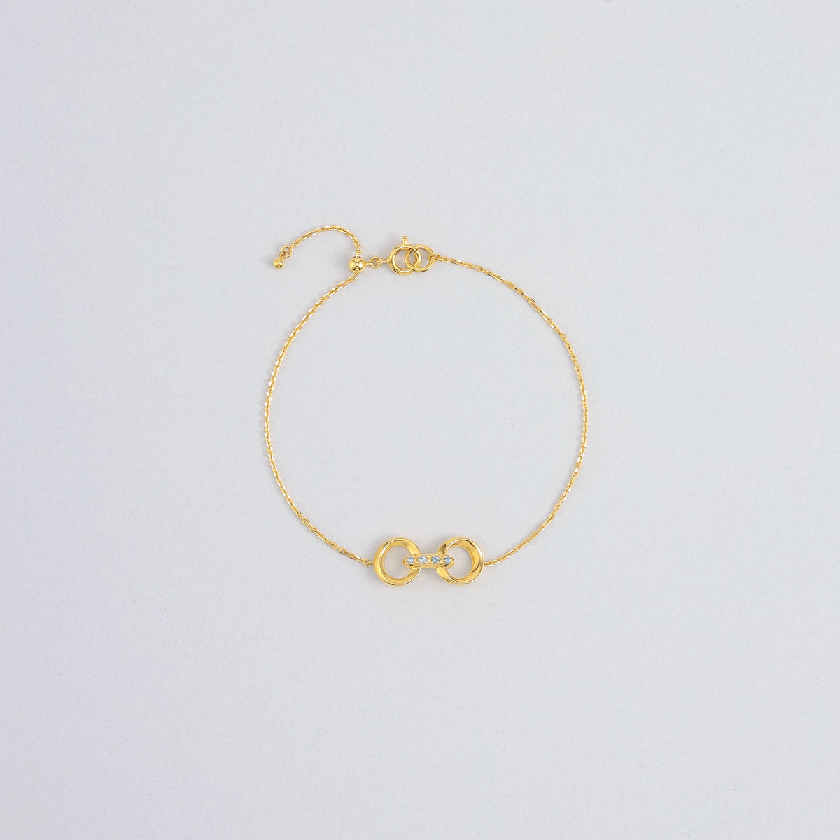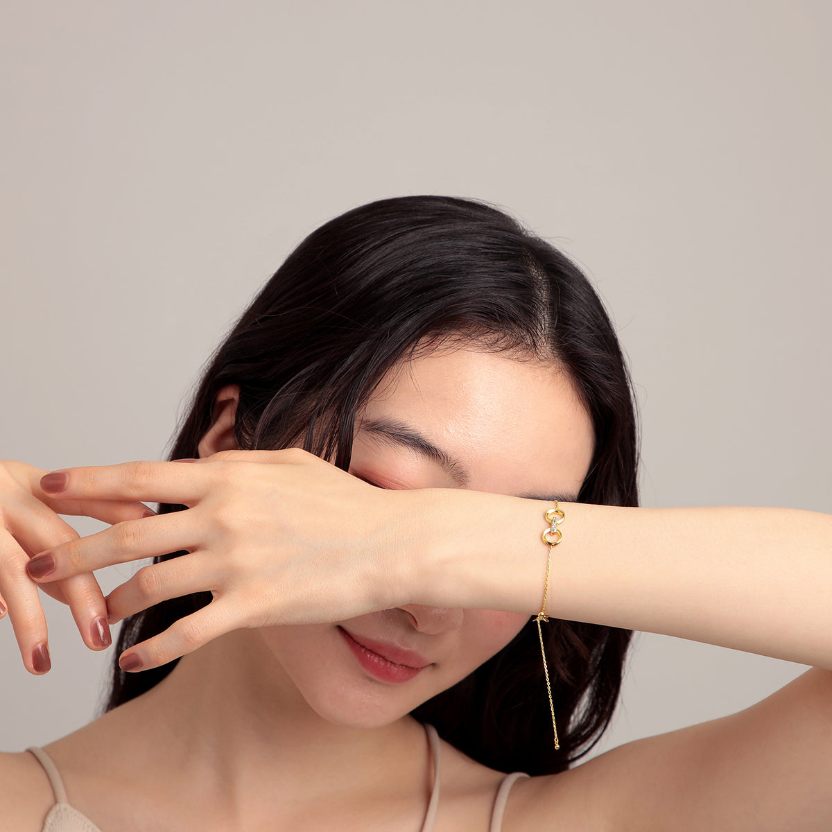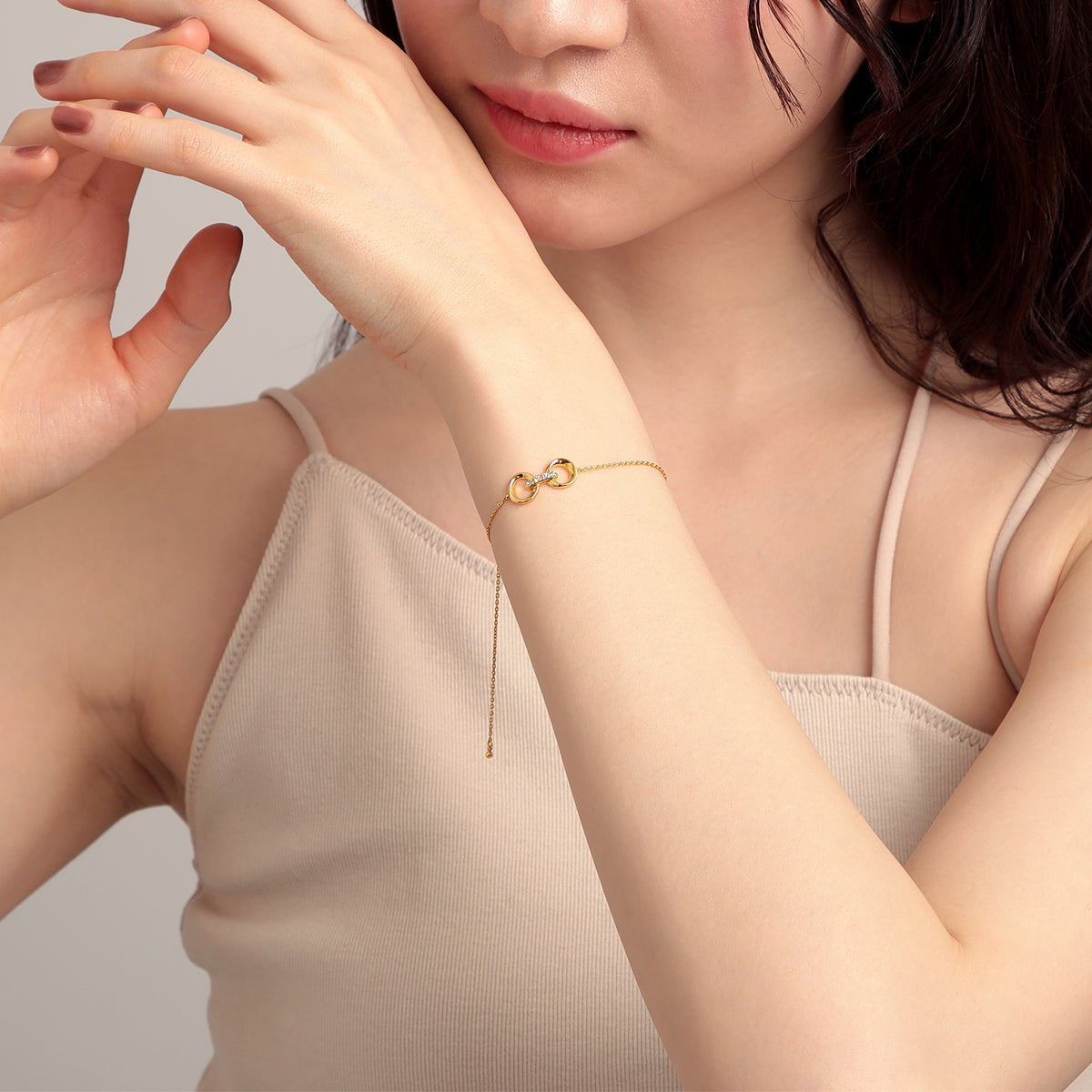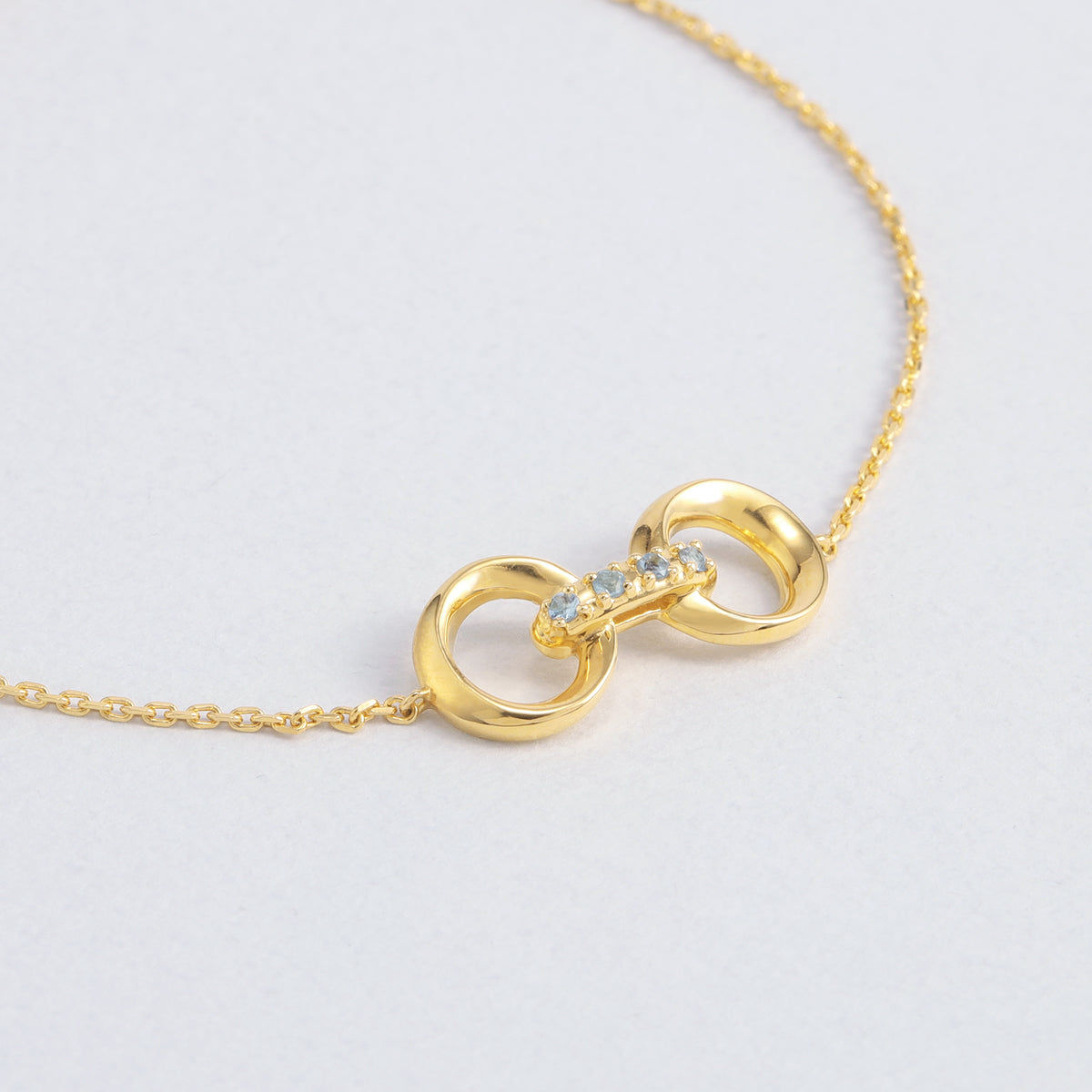 うお座の星座記号をアレンジしたモチーフが、お守りのように手元に寄り添うブレスレット。ドラマティックな陰影を生み出す艶やかに磨き上げられた地金に、母なる海を象徴するアクアマリンをセッティング。手首に沿うようにわずかにカーブをつけたデザインと、スライドアジャスター付きのチェーンで、手首に心地よくフィットする仕立てに。内なるアンデンティティを表す12星座が、ふと手元を見た時にも心を彩り、コーディネートに印象的な輝きをもたらします。