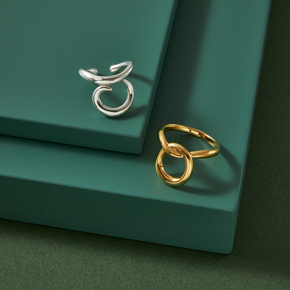おうし座の星座記号を大胆にアレンジした、アートピースのようなイヤーカフ。艶やかに磨き上げられた美しい地金が耳元で立体的に輝きます。おうし座の星座石であるマラカイトを覆輪留めでセッティング。新緑の季節に生まれるおうし座に深い癒しを授けるといわれています。揺らいだフォルムから見えるグリーンカラーが耳元を印象的に彩ります。