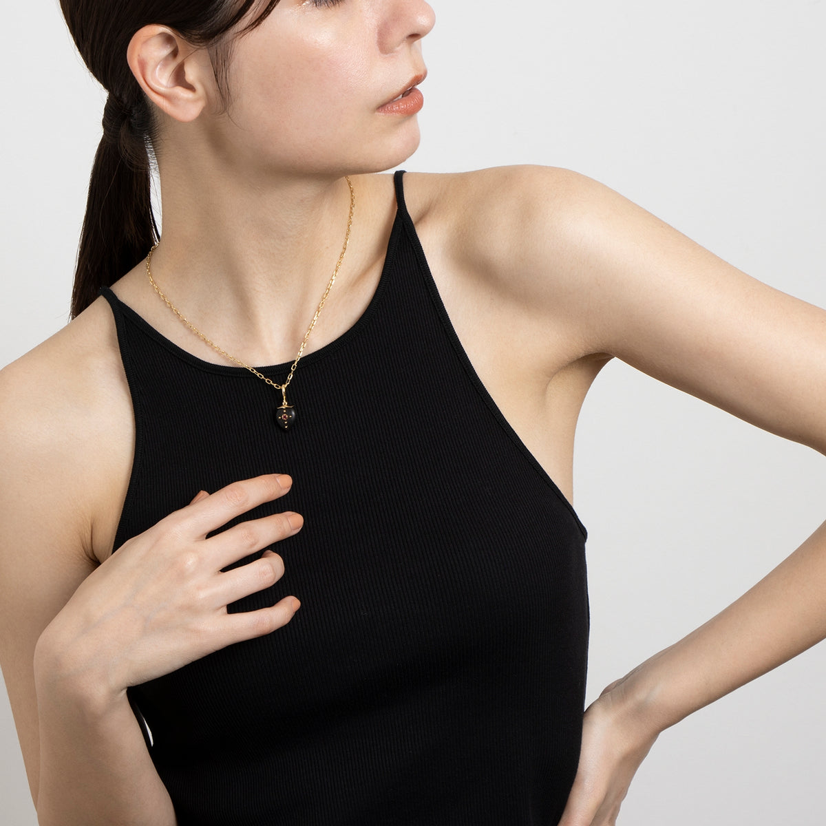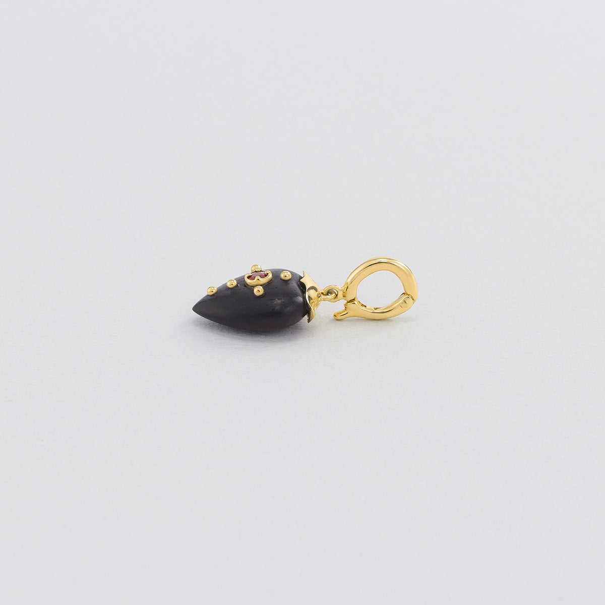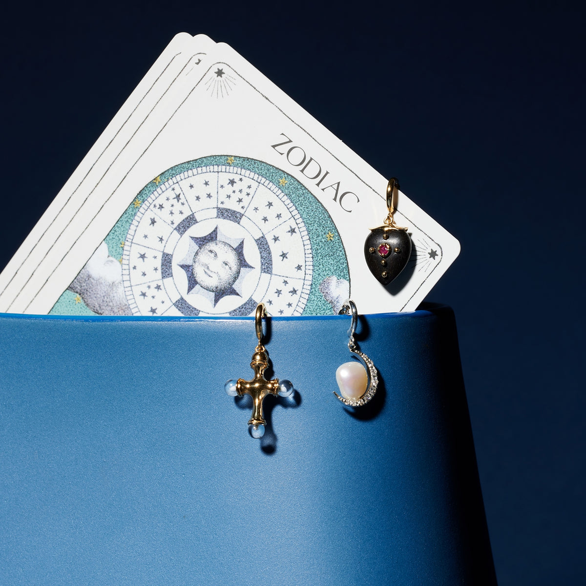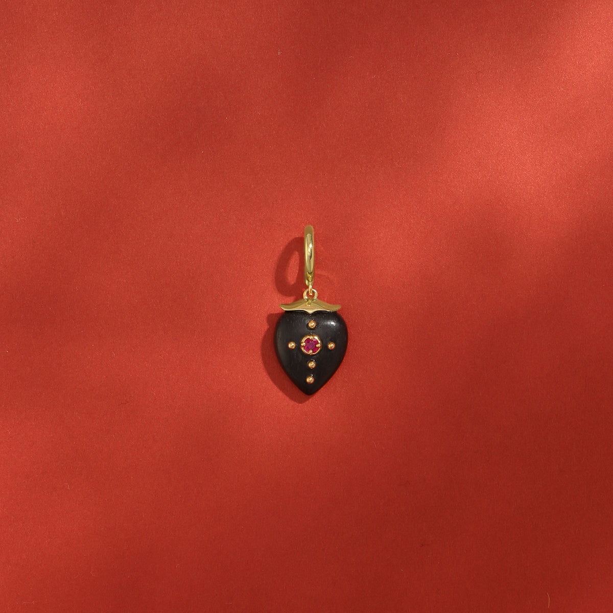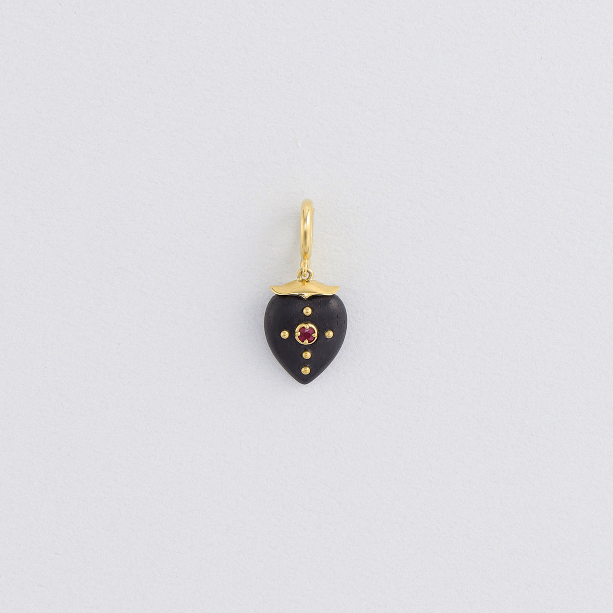 12星座に授けられた『I』で始まるメッセージからインスパイアされた、アイコニックなお守りチャーム。 さそり座=「I desire」(私は欲する) 古くから魔を寄せつけないと伝えられるエボニー(黒檀)に、クロスシルエットにスタッズをあしらったハートモチーフのチャーム。センターに配した守護石・ルビーは、さそり座の赤い一等星・アンタレスのように輝きます。心に秘めた信念と情熱を象徴するタリスマン。