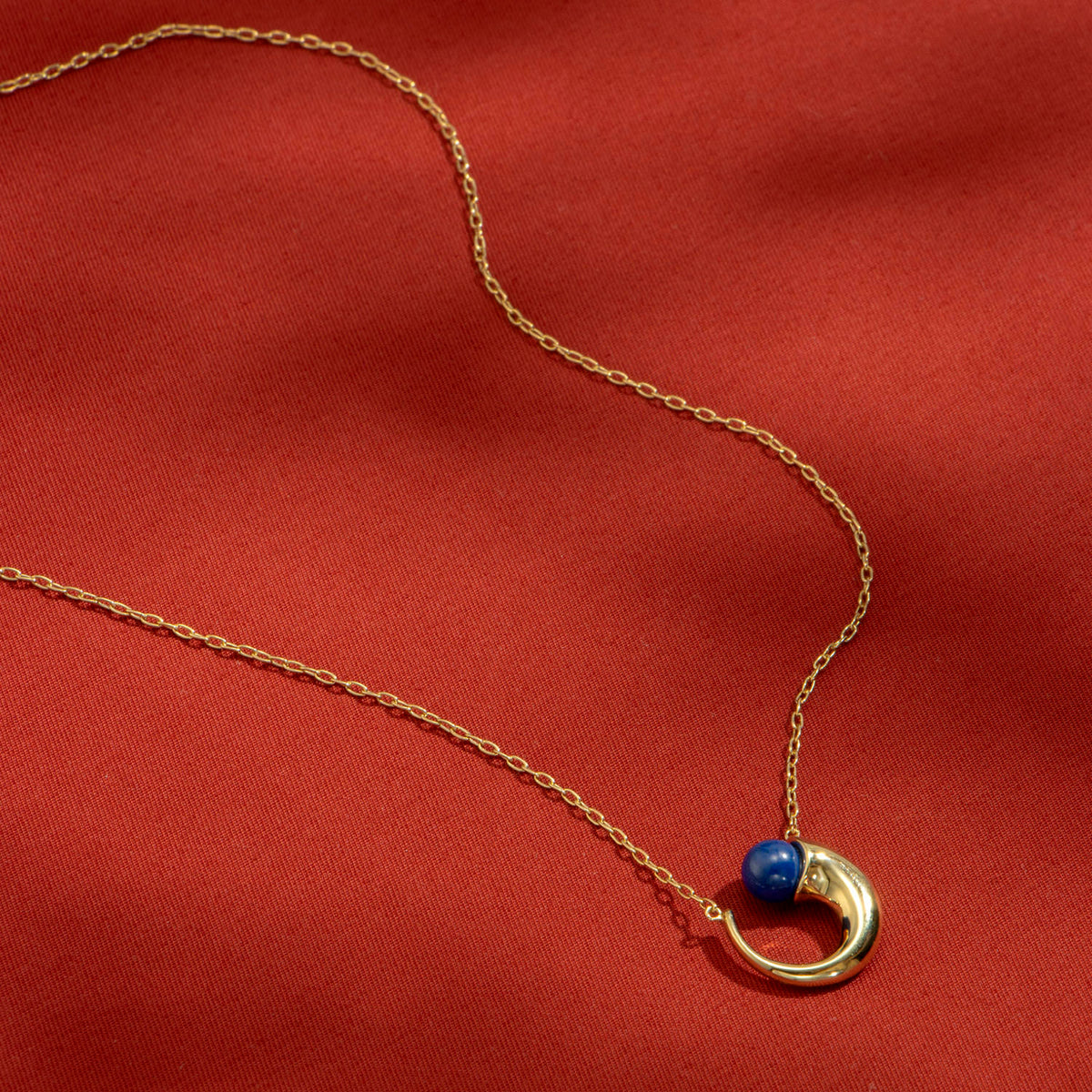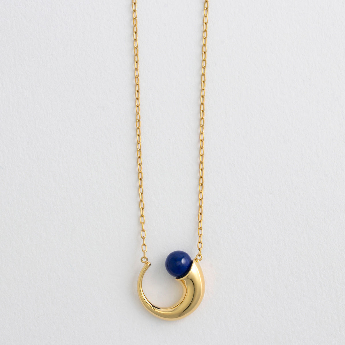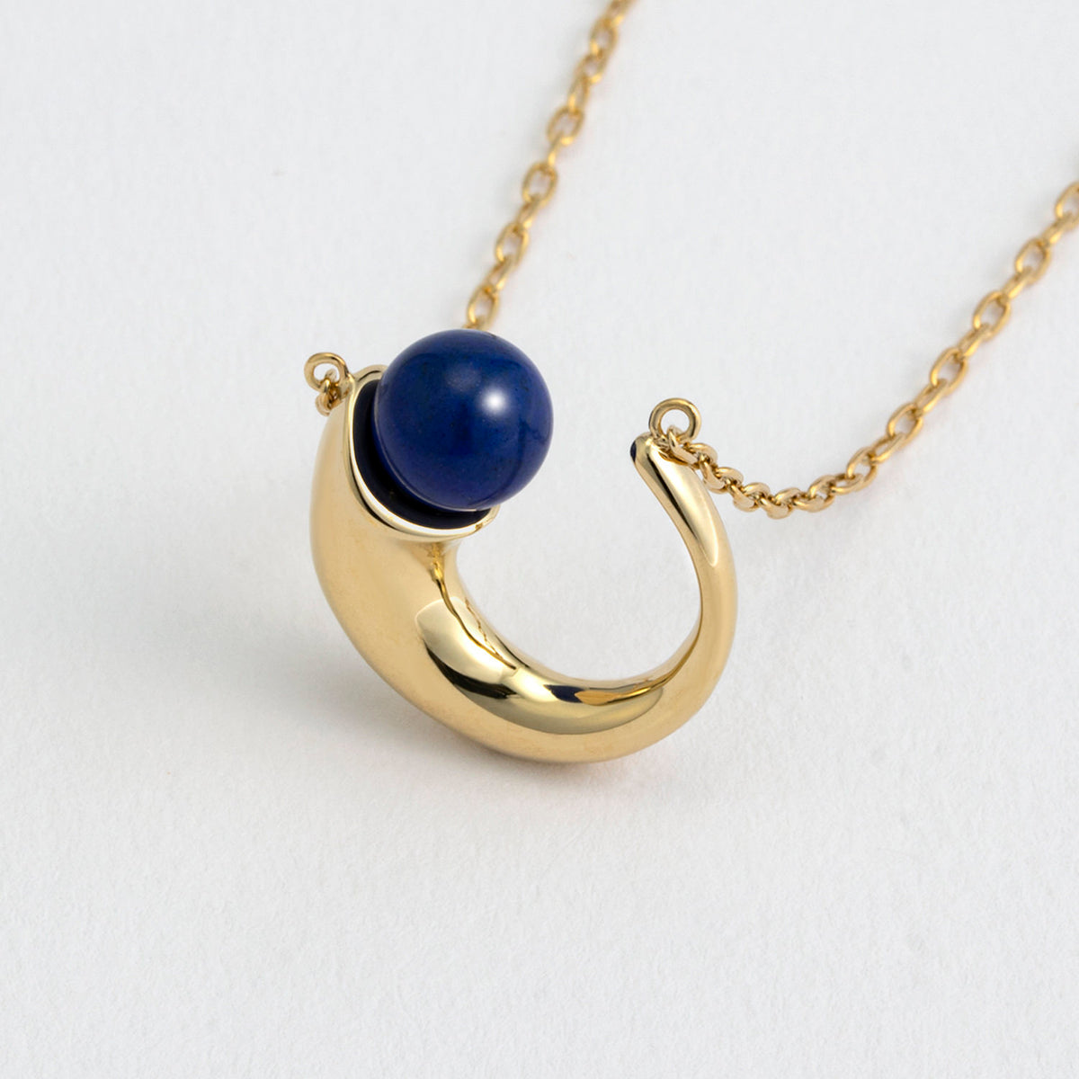 オブジェのように美しいカーブを描きながら光を放つホーンモチーフ。宇宙を表すラウンドストーンは印象的なカラーバリエーションで心を彩ります。クリエイティブなデザインのネックレスは性別を超え、新たな時代のペアジュエリーとしても存在感を放ちます。程よい抜け感のあるベーシックなチェーンは、スライドアジャスターで長さを自由に調節して頂けます。