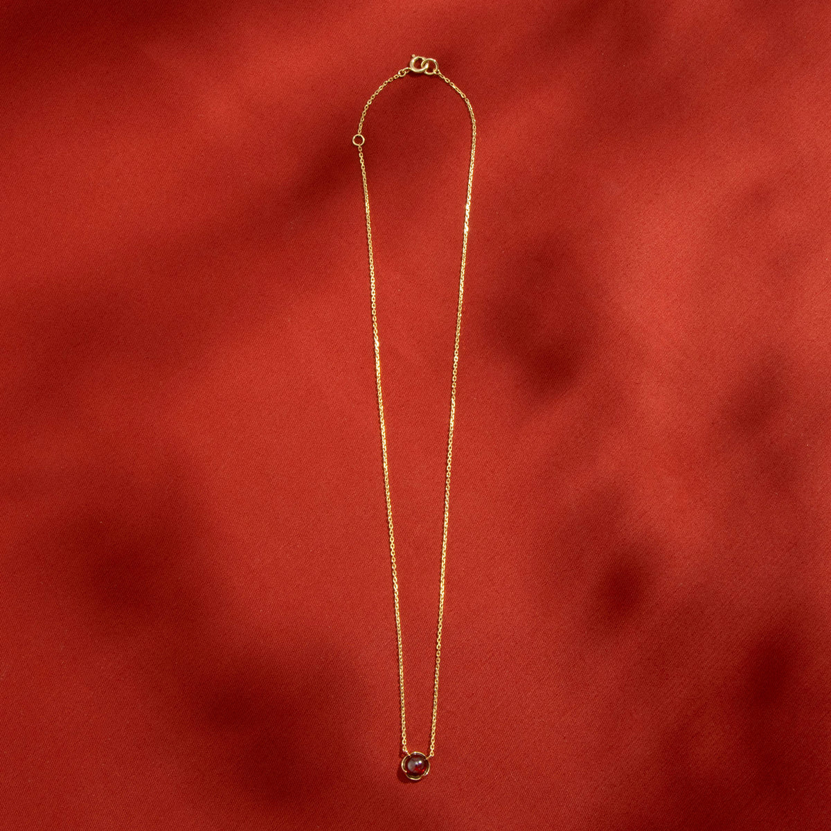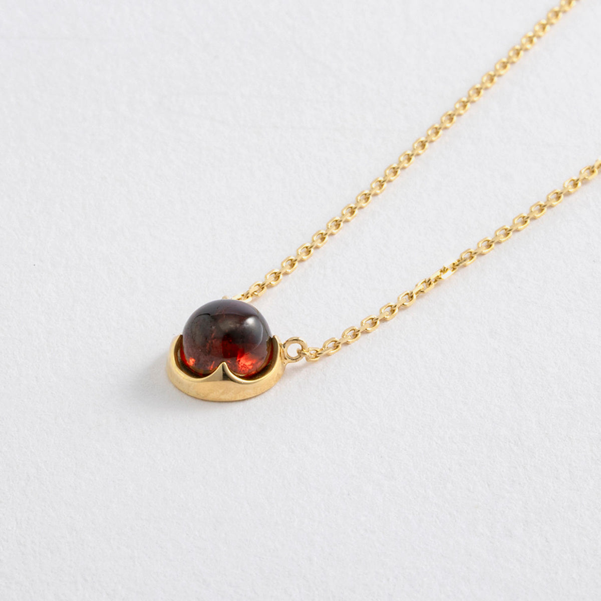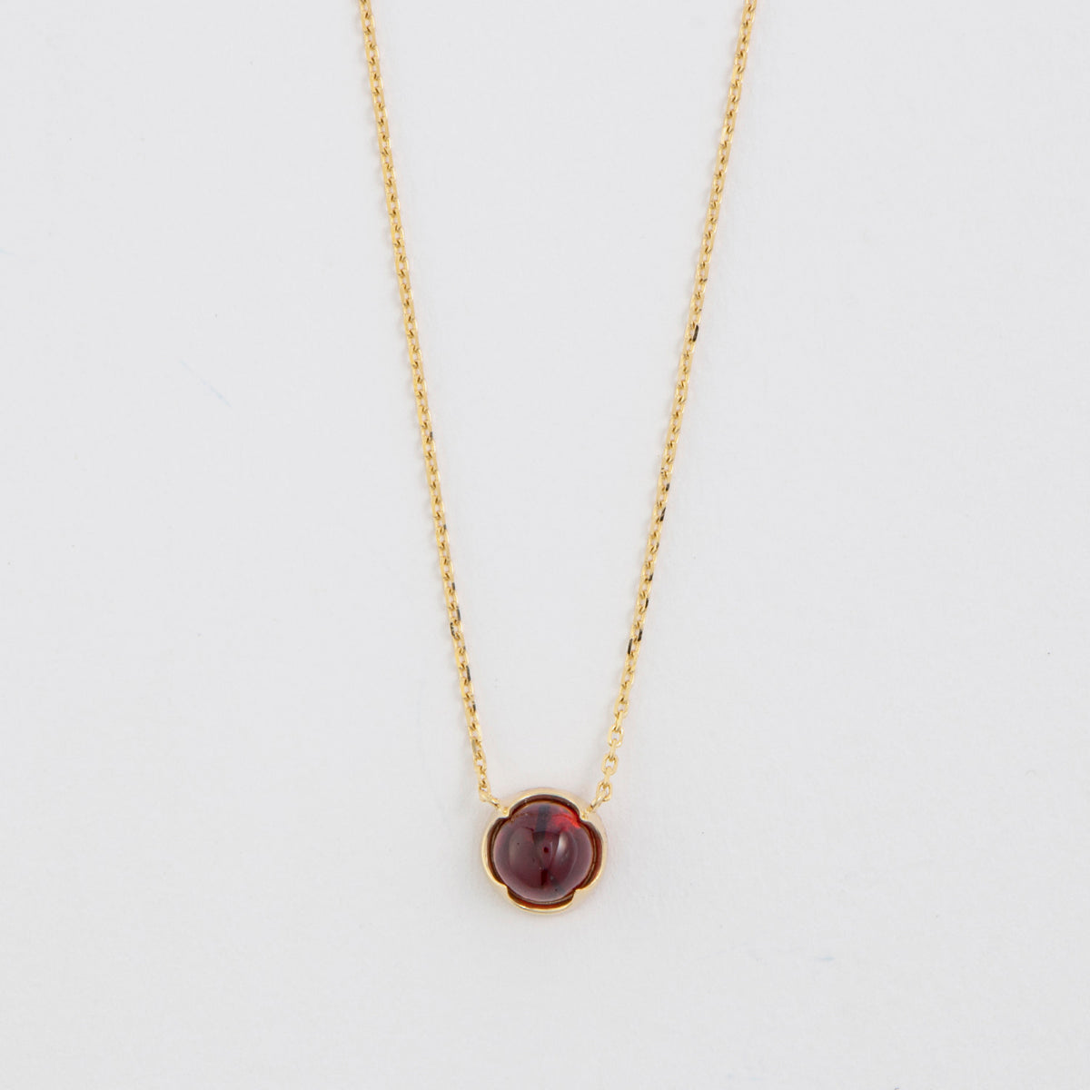 Orbe(オーブ)は、全てを内包する天体そのものを表していると言われています。ふっくらとした艶やかな輝きが美しいカボションストーンを印象的な爪で留め、程よいサイズ感で仕立てたネックレス。石留めした内側のシルエットがクローバーにも見える、自分だけの密やかなラッキーモチーフです。お揃いのピアスまたはリングと合わせたトータルコーディネートもおすすめです。