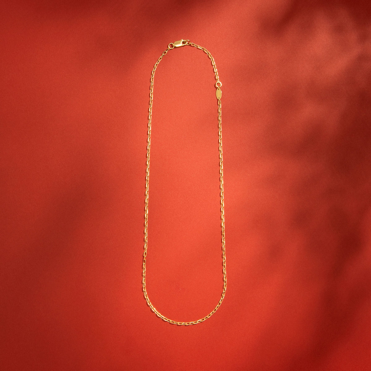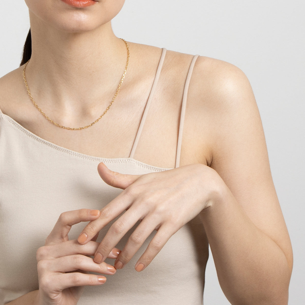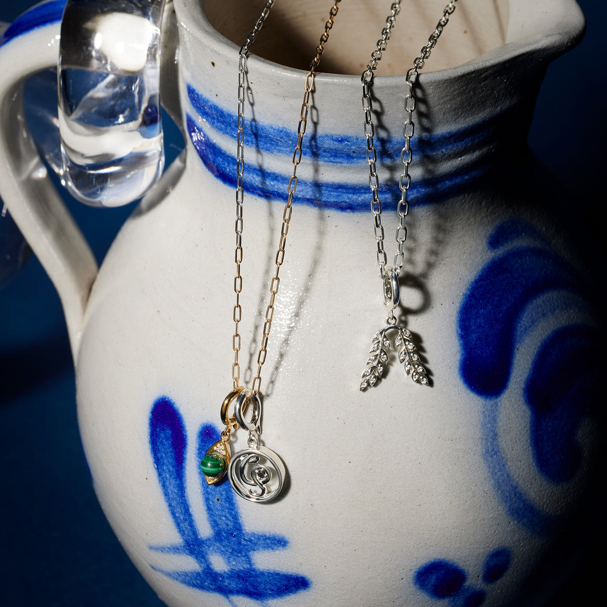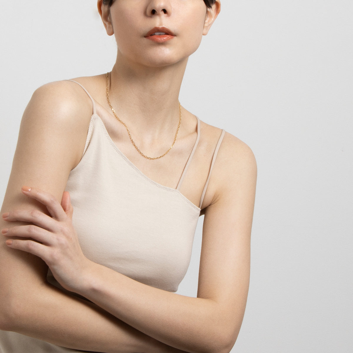 美しくカットを施されたチェーンコマの一つ一つが動くたびにきらめく、シンプルながら存在感を放つチェーン。 別売りのチャームと組み合わせて、ペンダントとしても使いやすい50cmの長さに設定。 デイリーなスタイリングに合わせやすい、ユースフルなチェーンです。