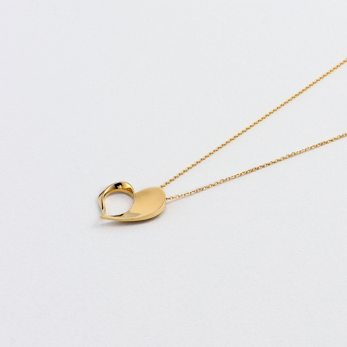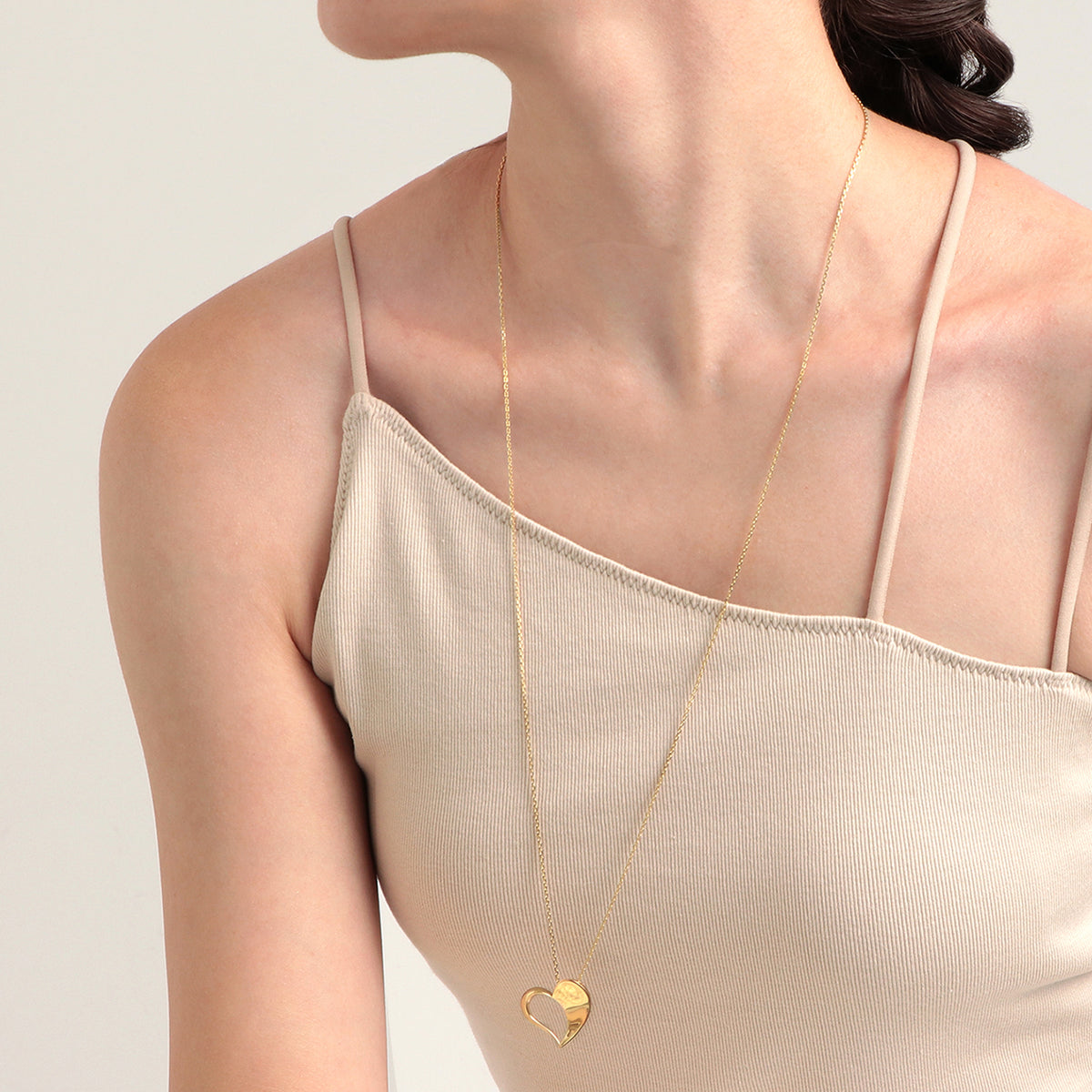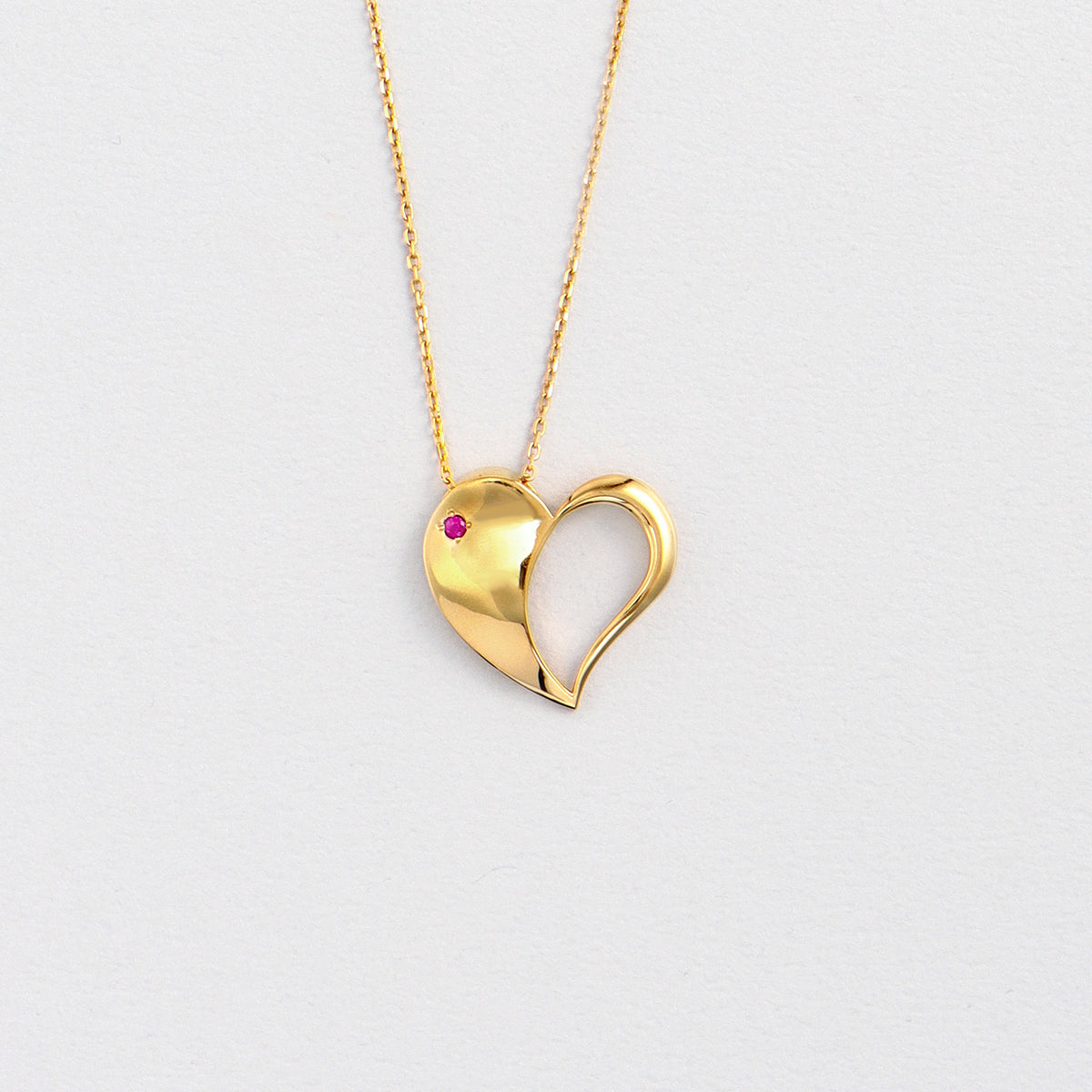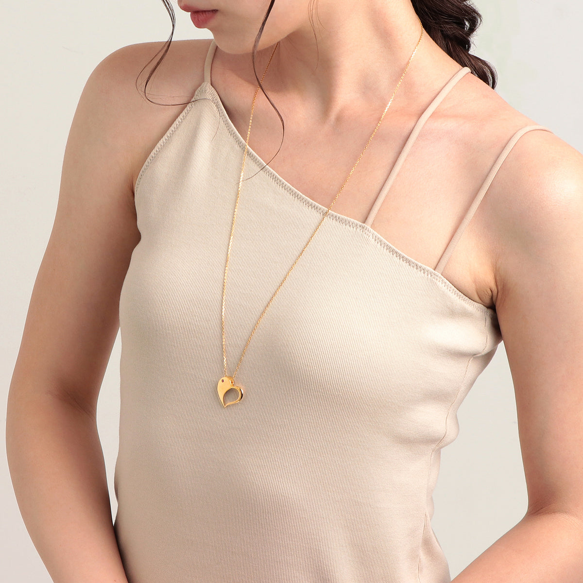 「感情」を司る水のエレメントから着想した、印象的なハートモチーフネックレス。 ハートモチーフの背面には、蠍座の一等星・アンタレスをイメージした煌めくルビーをセッティング。 艶やかに磨き上げられた地金面とリバーシブルでお使いいただけます。スマートな印象を与えてくれるロングチェーンは、スライドアジャスターでお好きな場所で長さ調整が可能。程よいボリューム感のクールなハートモチーフが旬のスタイリングを叶えてくれます。