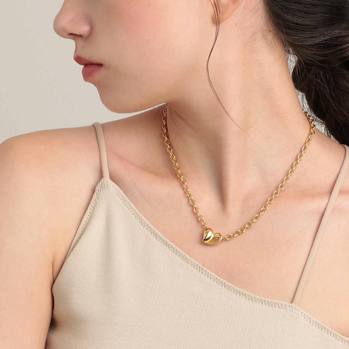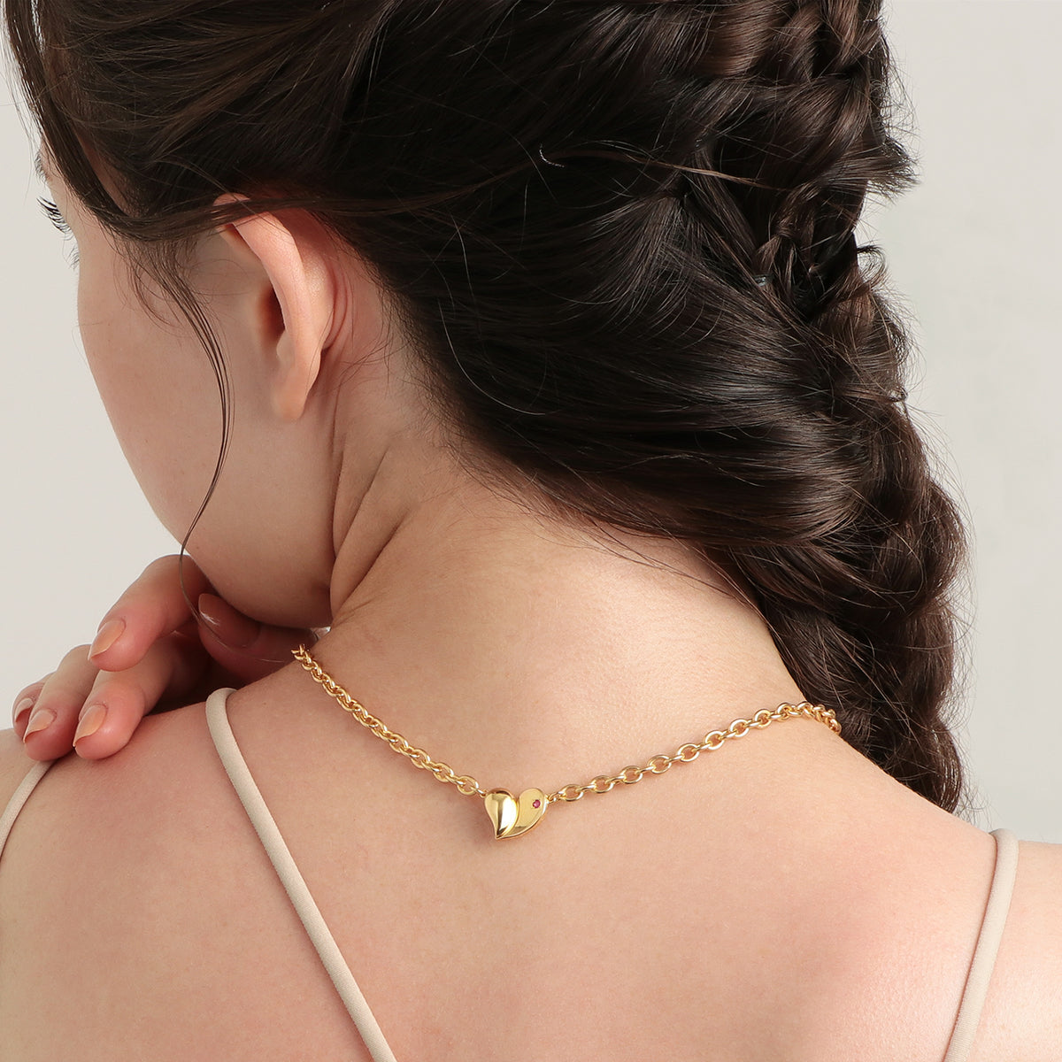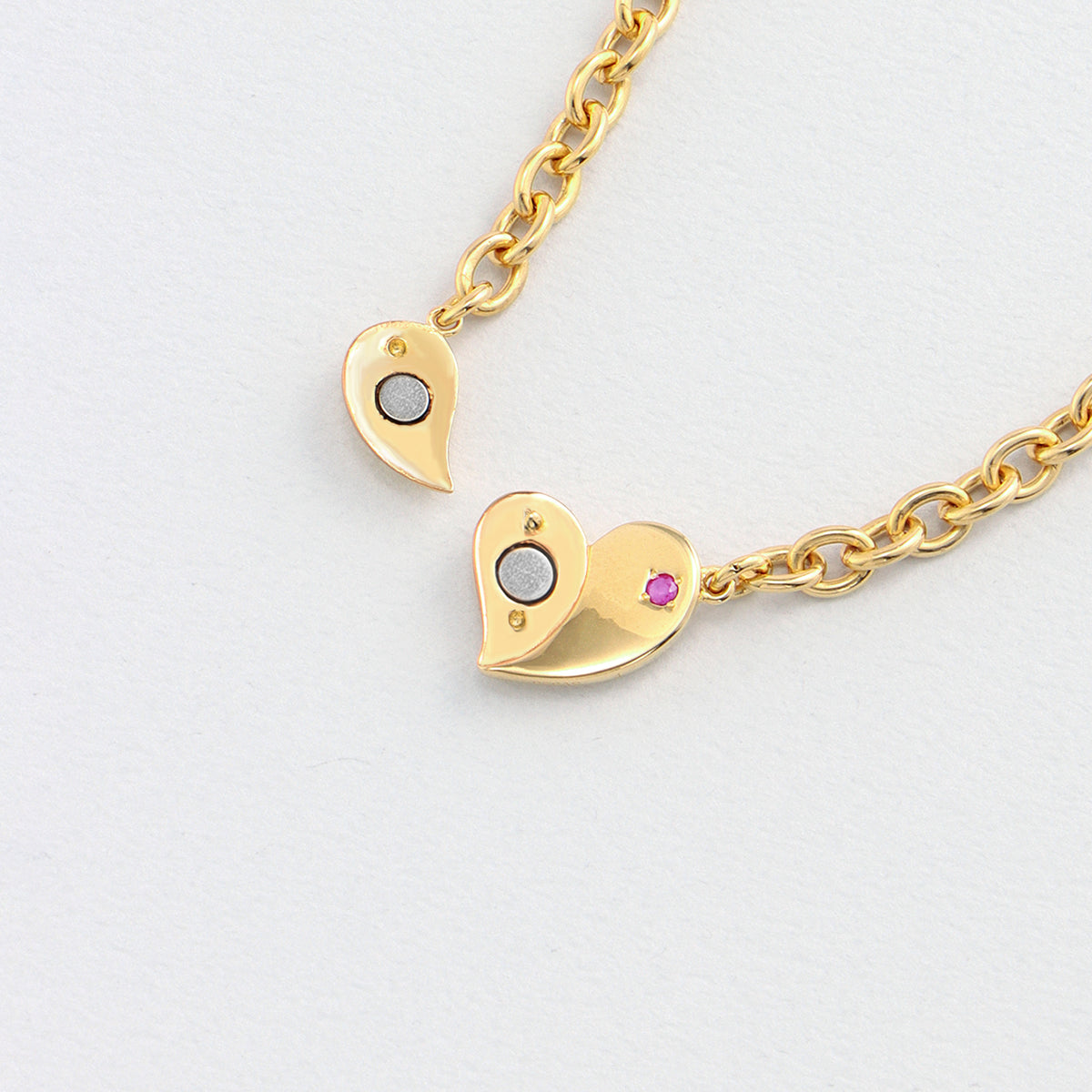 「感情」を司る水のエレメントから着想した、印象的なハートモチーフネックレス。 ハートモチーフに蠍座の一等星・アンタレスをイメージした煌めくルビーをセッティングし、スマートなシルエットを叶えるマグネットクラスプにアレンジ。磨き上げられた地金面とリバーシブルでお使いいただけます。程よいボリューム感のチェーンとクールなハートモチーフが旬のスタイリングを叶えてくれます。