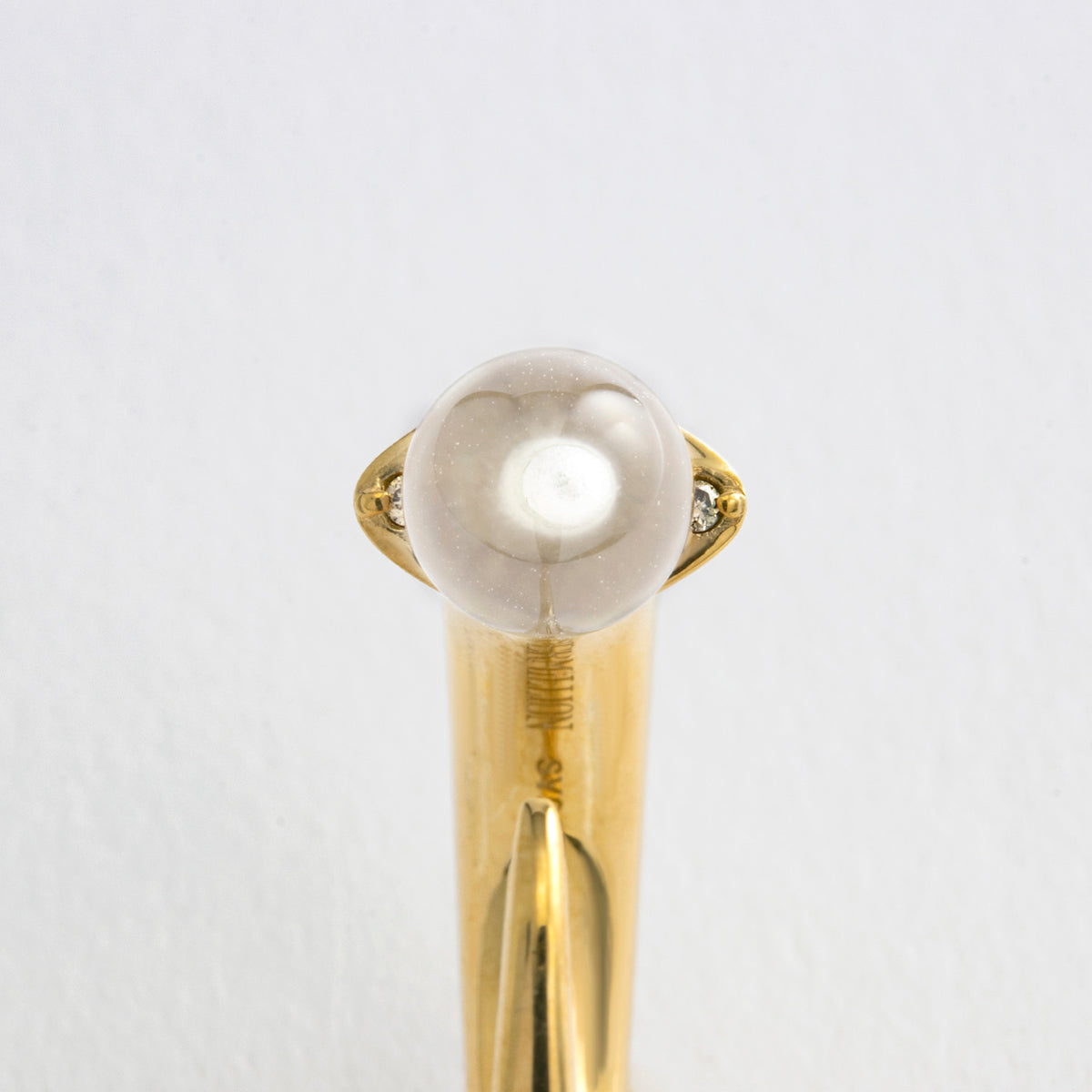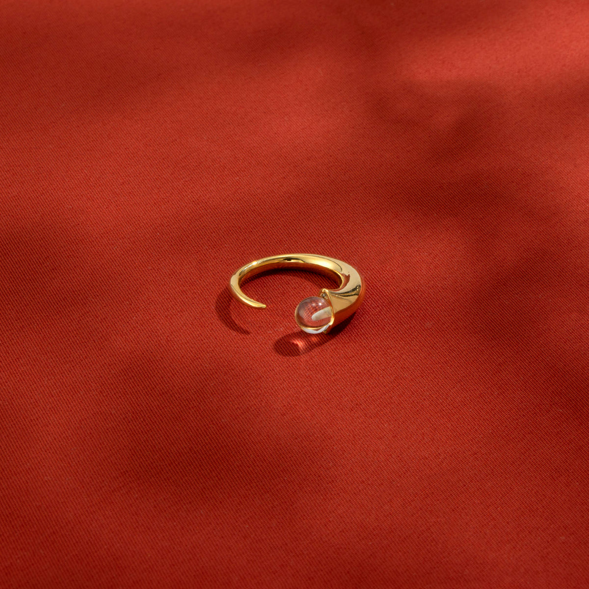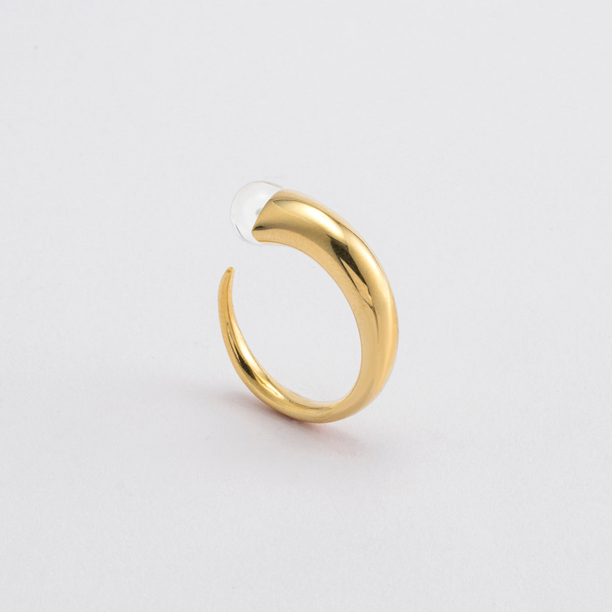 地金をたっぷりと使用したホーンモチーフはオブジェのように美しいカーブを描きながら光を放ち、宇宙を表すラウンドストーンは印象的なカラーバリエーションで心を彩ります。ストーンの両側に留めたブラウンダイヤモンドは自分だけのお守りのよう。互い違いにスタッキングすれば、一層ボリューム感のある表情を見せてくれます。自由な感性でオリジナルのカラーコーディネートをお楽しみください。クリエイティブなデザインのリングは性別を超え、新たな時代のペアジュエリーとしても存在感を放ちます。