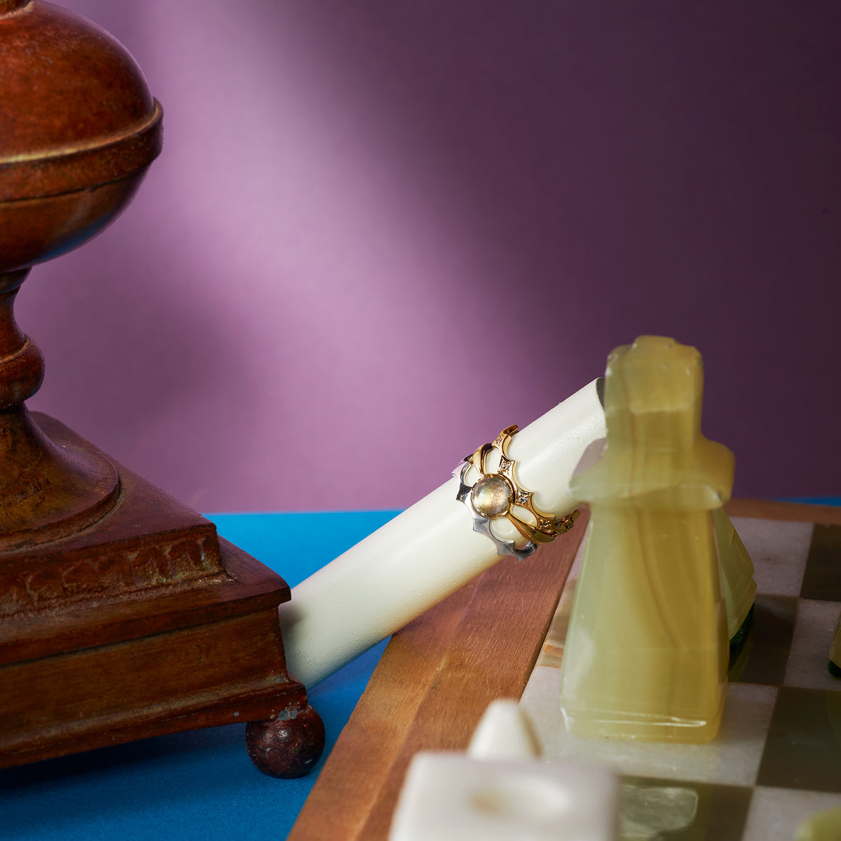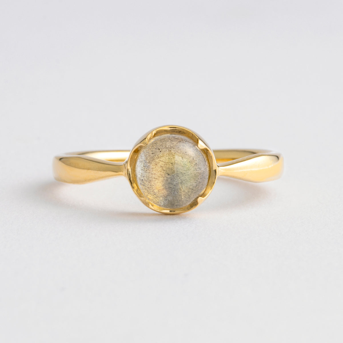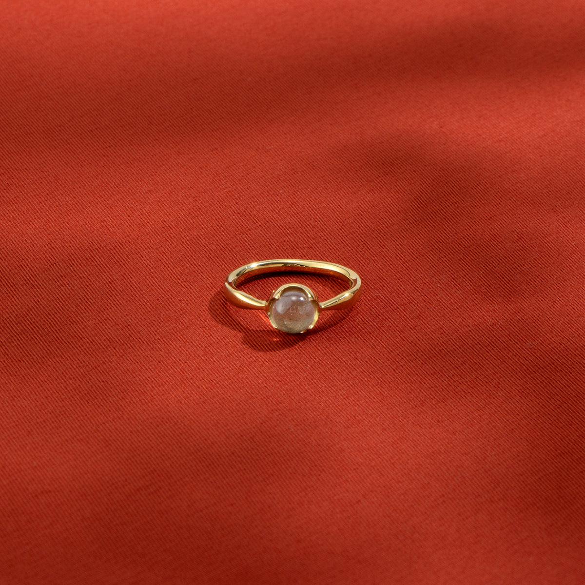 Orbe(オーブ)は、全てを内包する天体そのものを表していると言われています。ふっくらとした艶やかな輝きが美しいカボションストーンを印象的な爪で留め、程よいサイズ感で仕立てたリング。石留めした内側のシルエットがクローバーに見える、自分だけの密やかなラッキーモチーフです。中心に向かって絞り込んだアームが指をすっきりと見せてくれます。Clarusリングとのスタッキングや、お揃いのネックレスまたはピアスと合わせたトータルコーディネートもおすすめです。