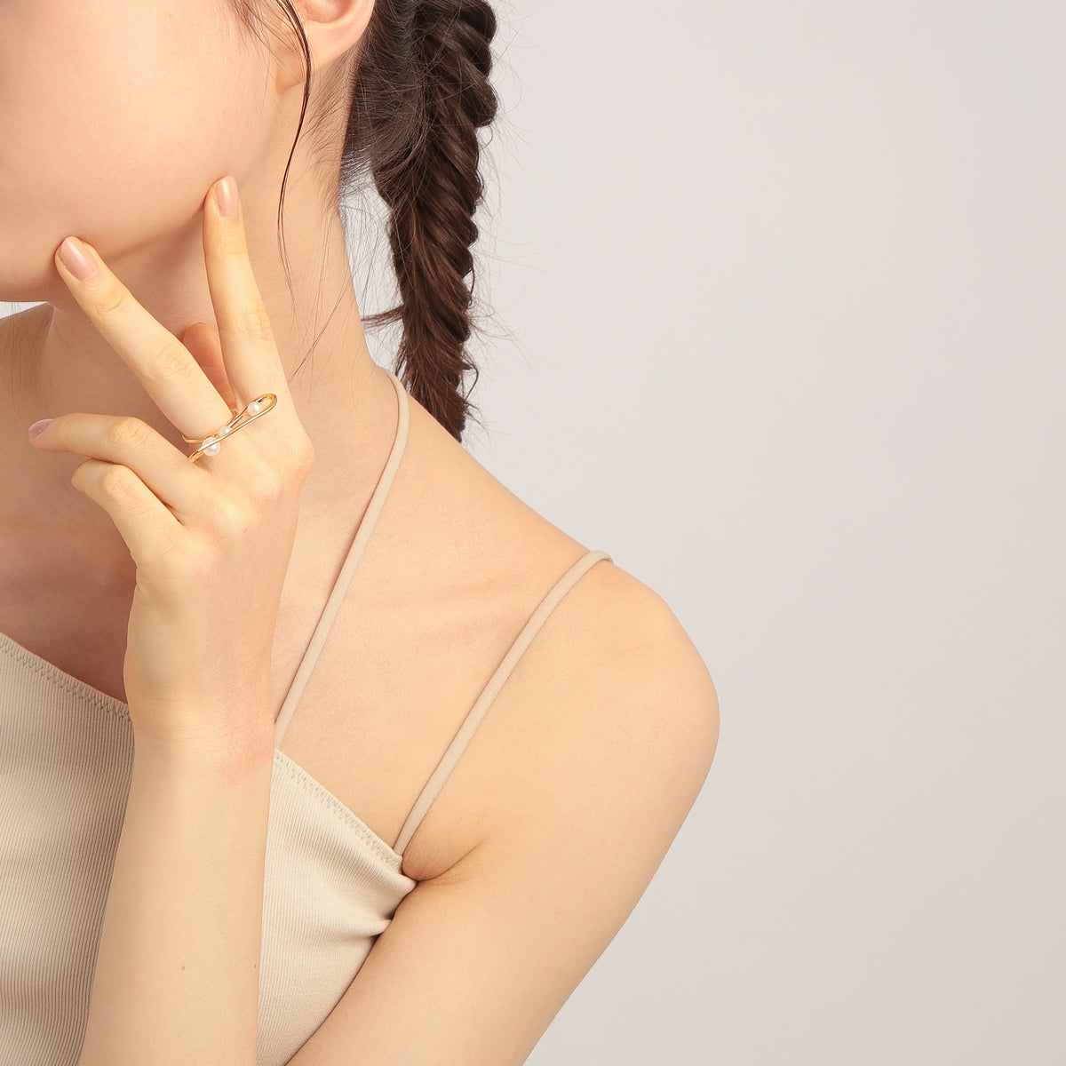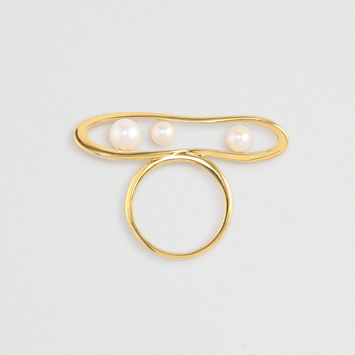 慈愛に満ちた満月の光からインスパイアされた、オブシェのような立体感が美しいリング。月暈をイメージした地金のラインにわずかなひねりを加え、浮遊するようなバランスで淡水パールをセッティング。月光が舞い降りたような華やかで暖かみのあるイエローゴールドカラーと、全てを包み込む淡水パールの柔らかな輝きが、手元に月の女神ような優しさをもたらします。