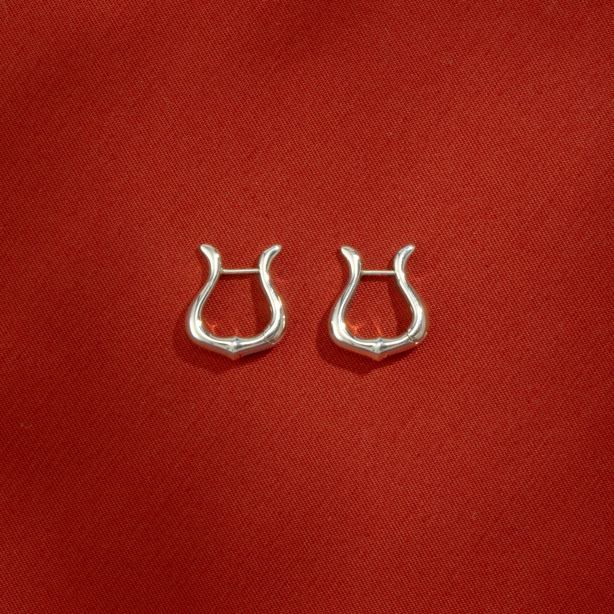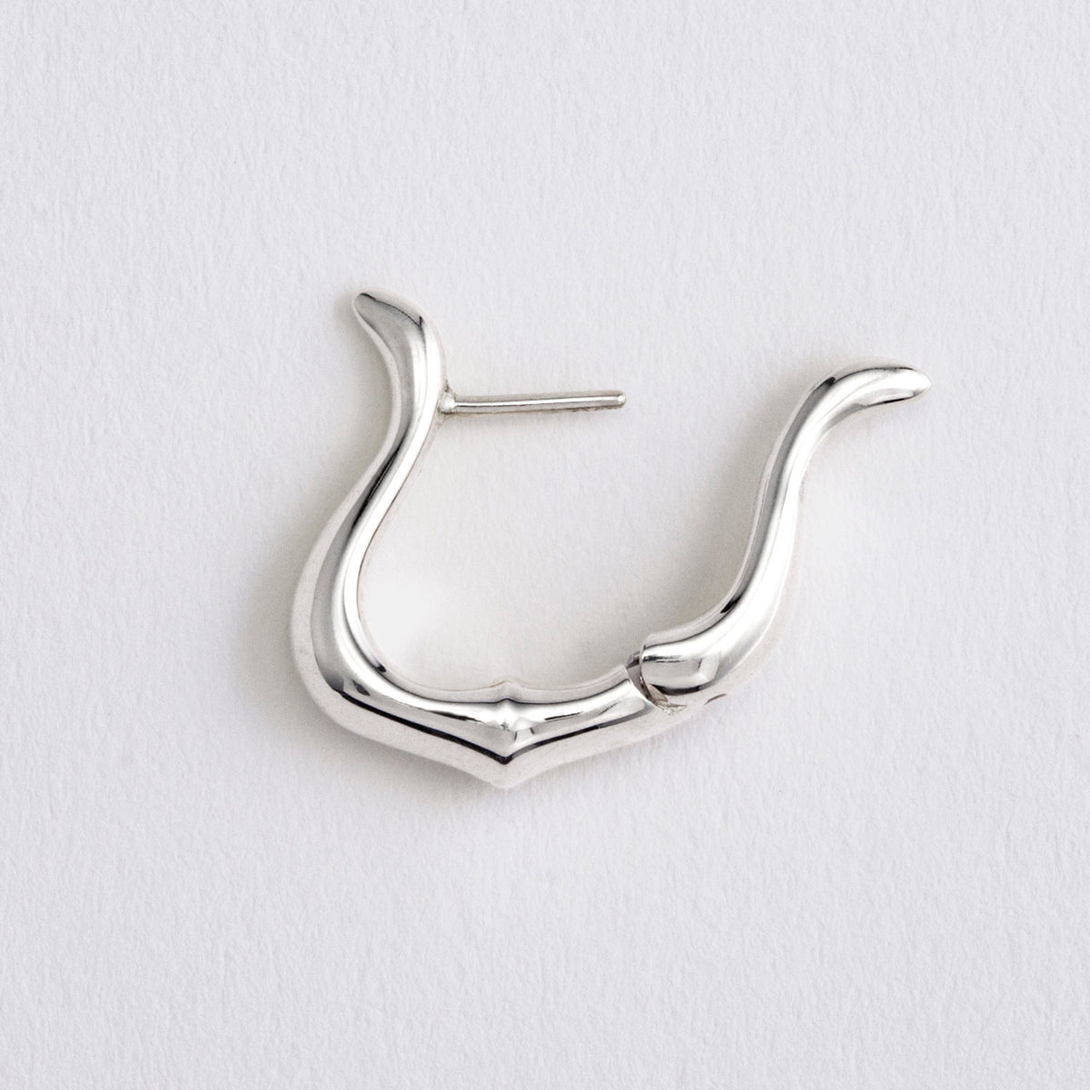 ホーンモチーフのミニフープピアスはキャッチレス仕様でどこから見ても洗練された美しいフォルムにこだわりました。マスク着用時でもスムーズな着け心地です。さりげなく存在感のある曲線とサイズ感でどんなコーディネートにもマッチし、銀の持つ無垢な輝きが耳元をスタイリッシュに彩ります。