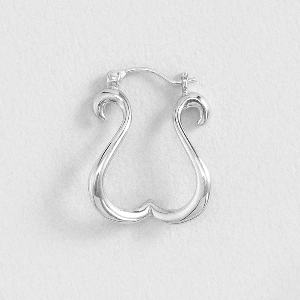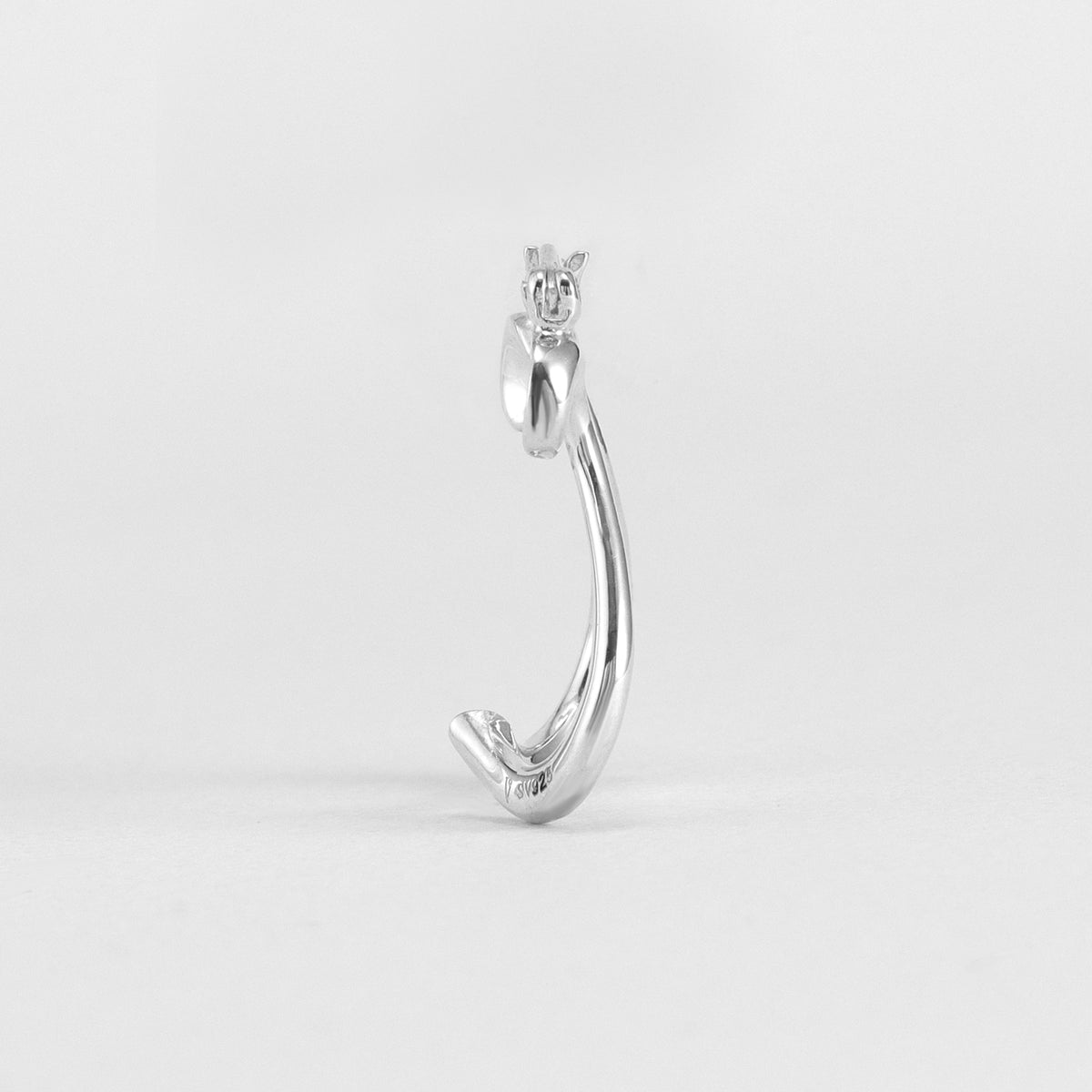 おひつじ座の星座記号を大胆にアレンジした、アートピースのようなシングルピアス。艶やかに磨き上げられた美しい地金が耳元で立体的に輝きます。スタッドピアスやイヤーカフと組み合わせてアシンメトリーコーディネートをお楽しみください。