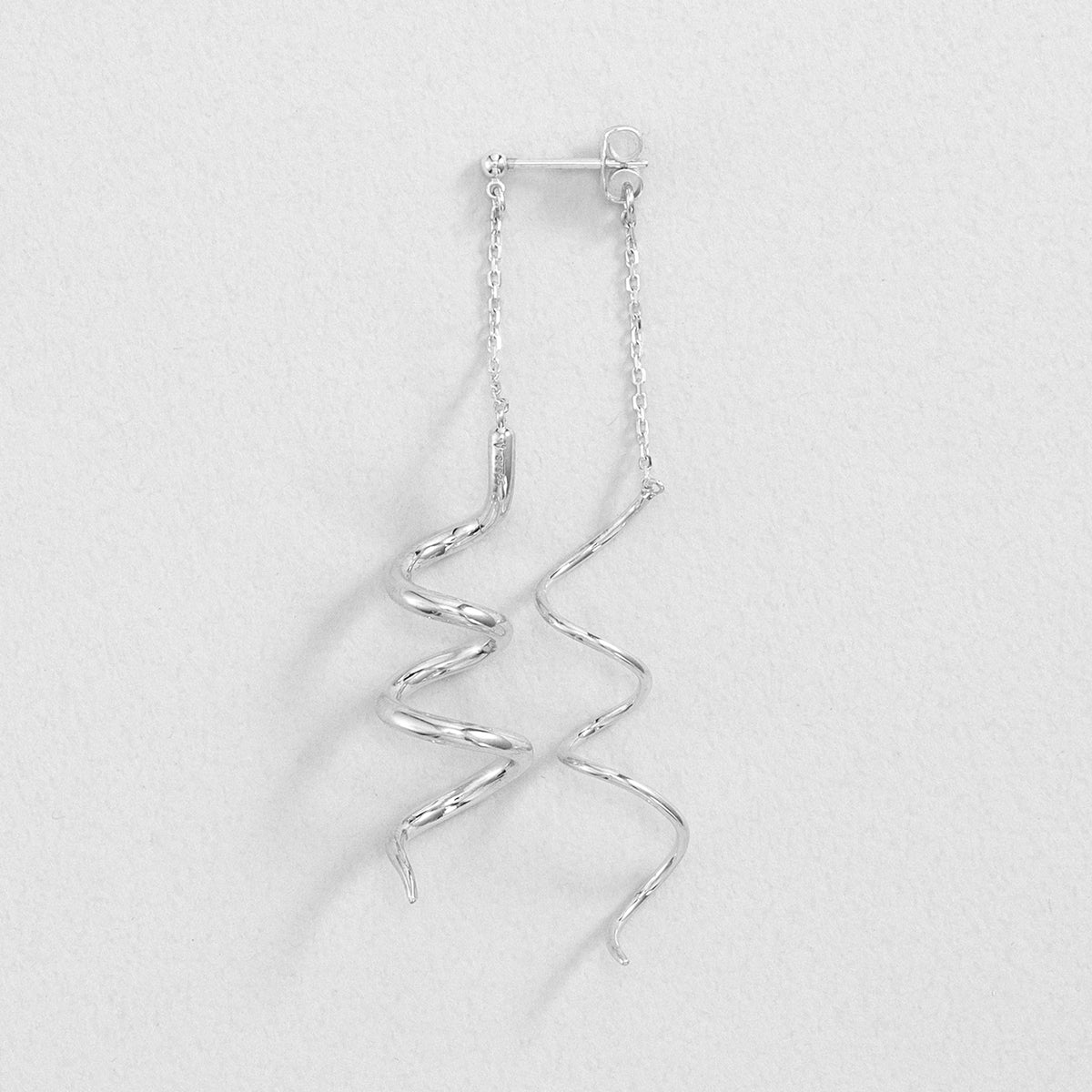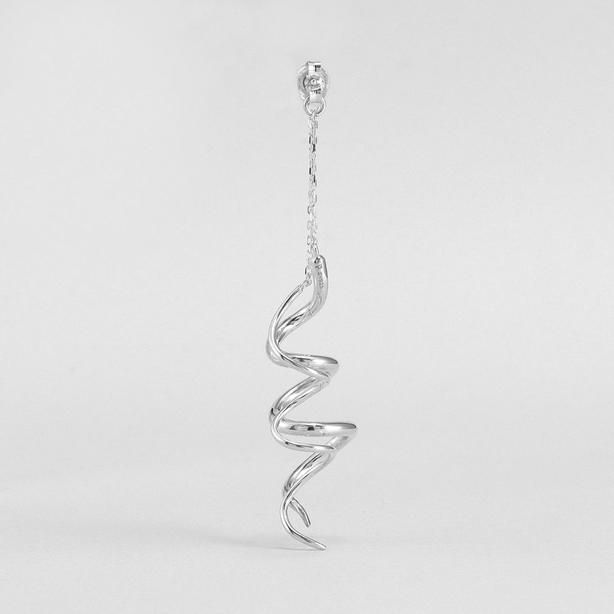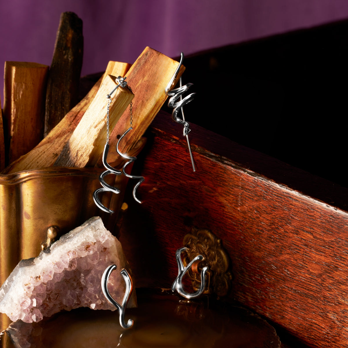 みずがめ座の星座記号を大胆にアレンジした、アートピースのようなシングルピアス。艶やかに磨き上げられた美しい地金が耳元で立体的に輝きます。アシンメトリーなコーディネートのほか、2つ合わせてペアでのスタイリングもおすすめです。