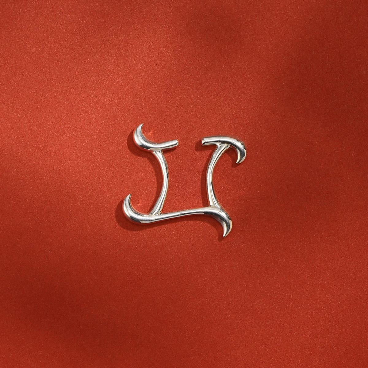 ふたご座の星座記号を大胆にアレンジした、アートピースのようなイヤーカフ。艶やかに磨き上げられた美しい地金が耳元で立体的に輝きます。シンプルなアイテムに重ね付けしたり、イヤーカフ同士のレイヤードもおすすめです。