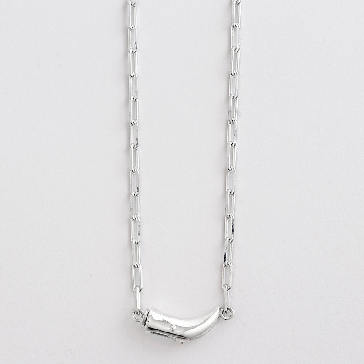 オリジナルのホーンモチーフクラスプとモードな印象の程よいボリュームのチェーンが胸元を洗練された印象に仕上げてくれます。ホーンモチーフ金具はフロントで留めてネックレストップとして、後ろで留めればシンプルなチェーンネックレスとして、スタイリングの変化を楽しめます。ジェンダーフリーなデザインのネックレスは性別を超えたペアジュエリーとしても存在感を放ち、新しい時代に寄り添います。
