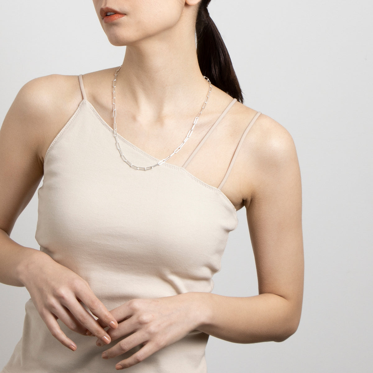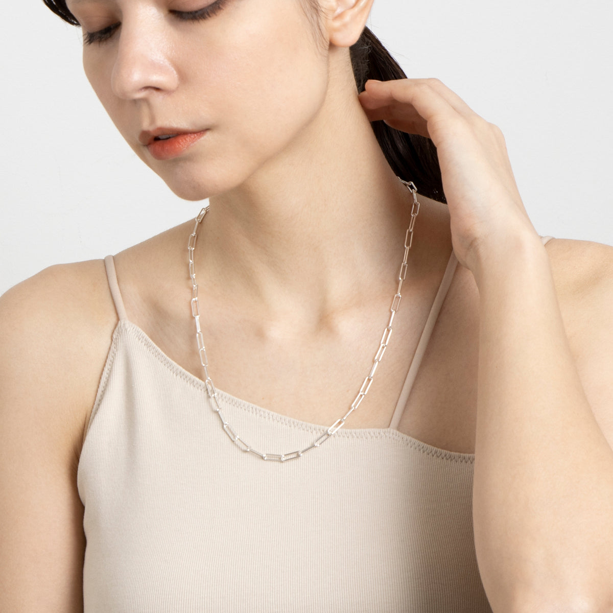 ボリューム感がありながら軽やかさを感じさせてくれる、1本で着け映えのするチェーンネックレス。 別売りのチャームと組み合わせて自分だけのアレンジを楽しめます。スタイリングに合わせやすい55cmの長さもポイント。 お好きな位置のコマで着用いただくことで長さ調整が可能です。先端のコマにチャームを下げ、Y字シルエットのスタイリングもおすすめ。