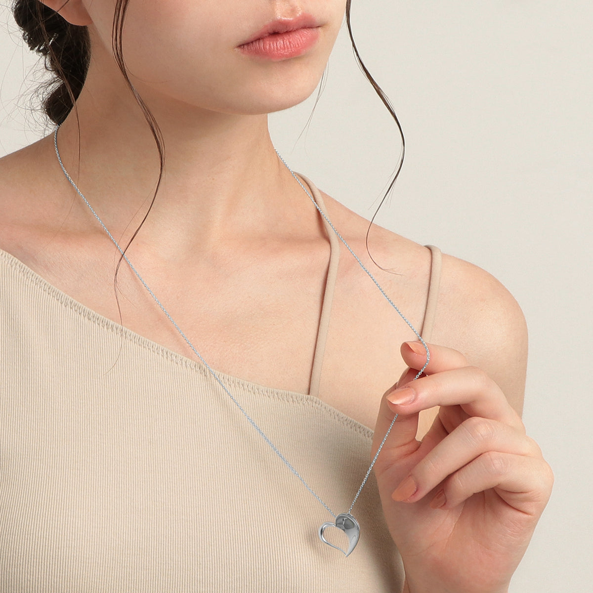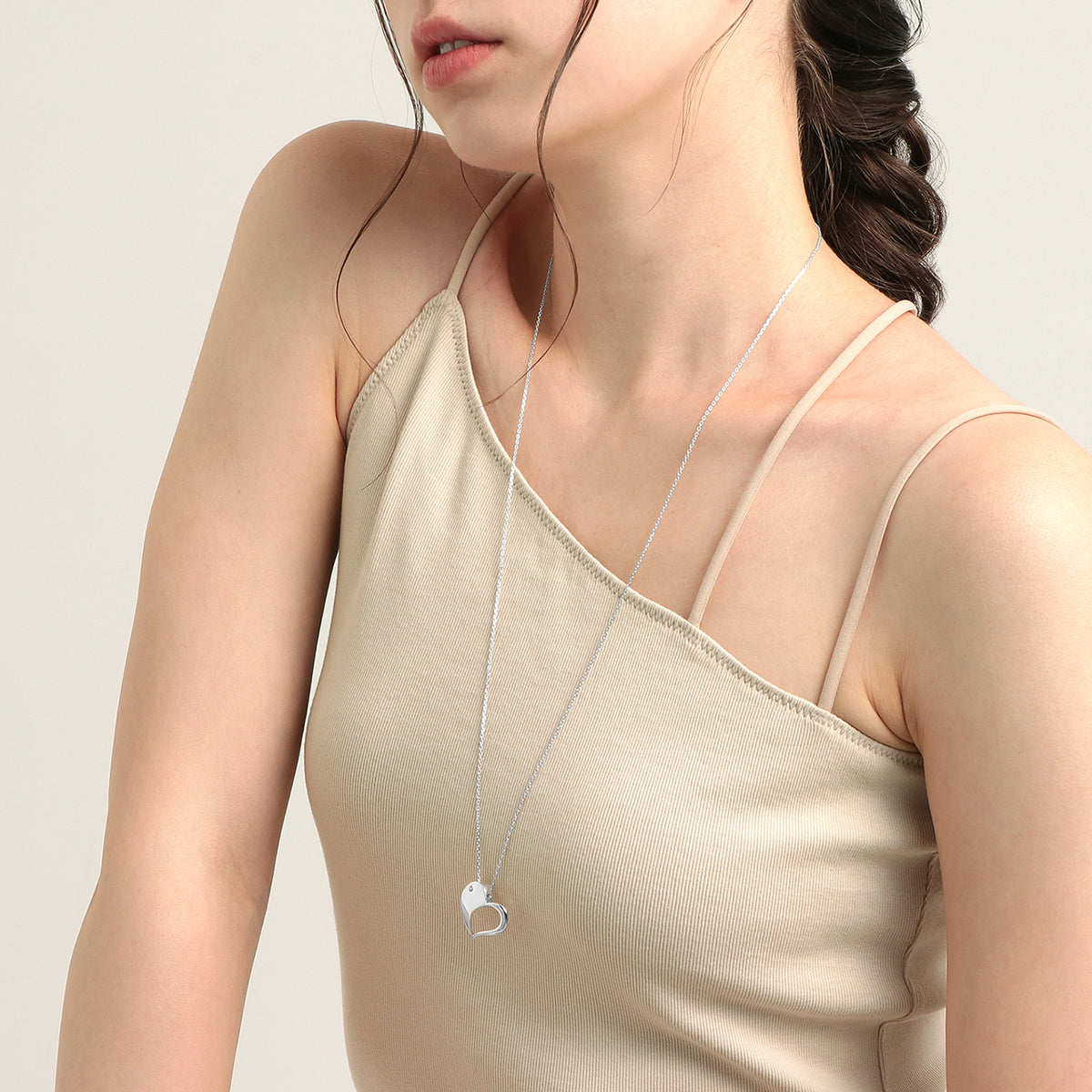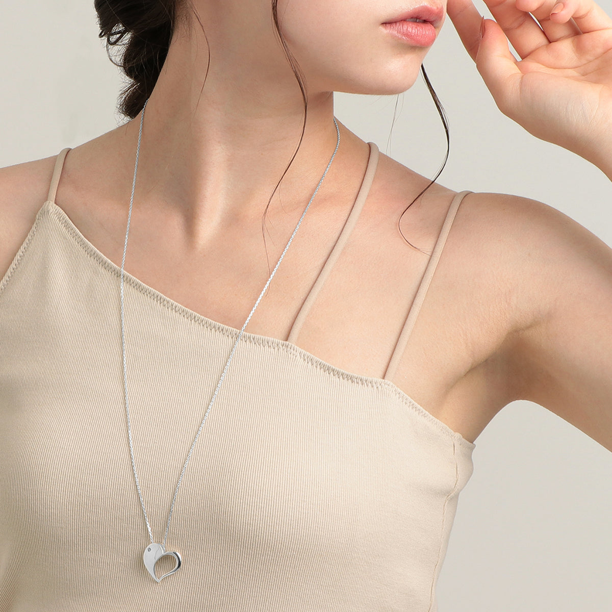 「感情」を司る水のエレメントから着想した、印象的なハートモチーフネックレス。 ハートモチーフの背面には、夜空に輝く一等星をイメージした煌めくブラウンダイヤをセッティング。 艶やかに磨き上げられた地金面とリバーシブルでお使いいただけます。スマートな印象を与えてくれるロングチェーンは、スライドアジャスターでお好きな場所で長さ調整が可能。程よいボリューム感のクールなハートモチーフが旬のスタイリングを叶えてくれます。