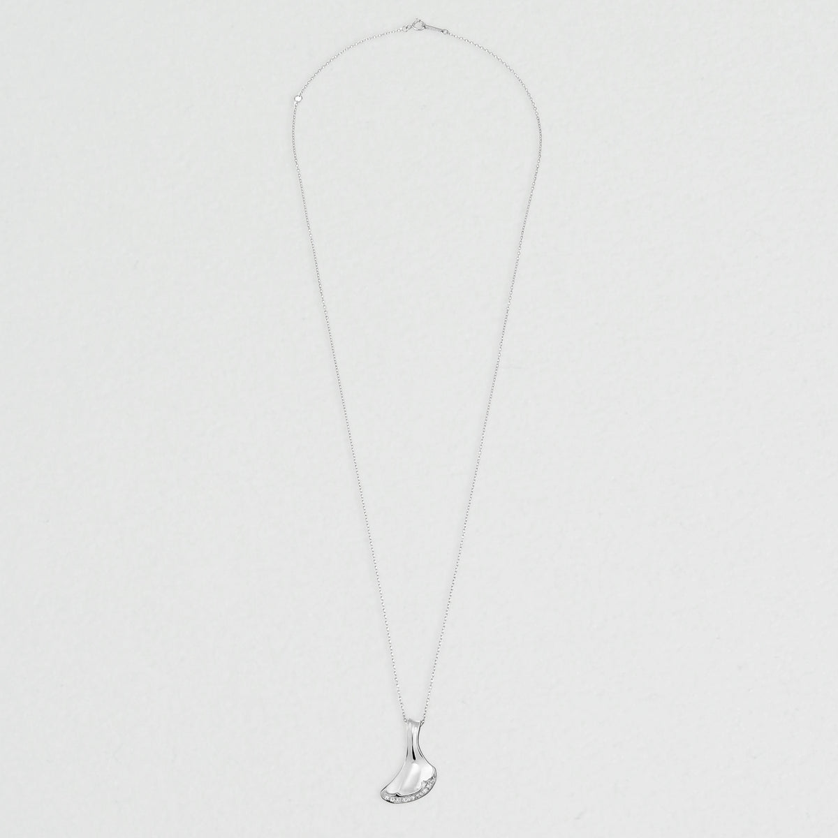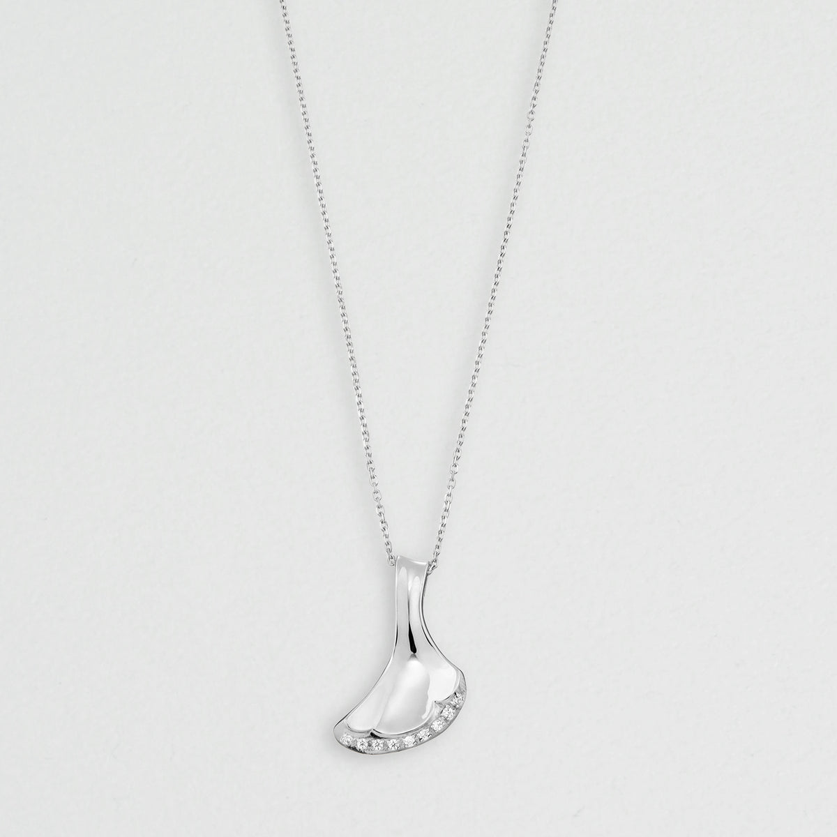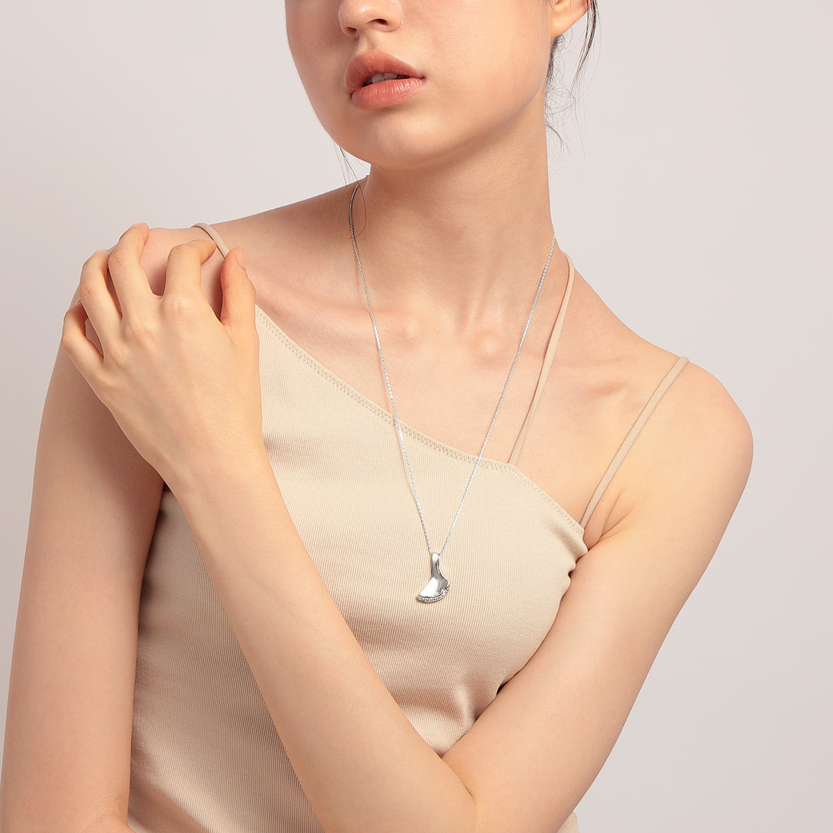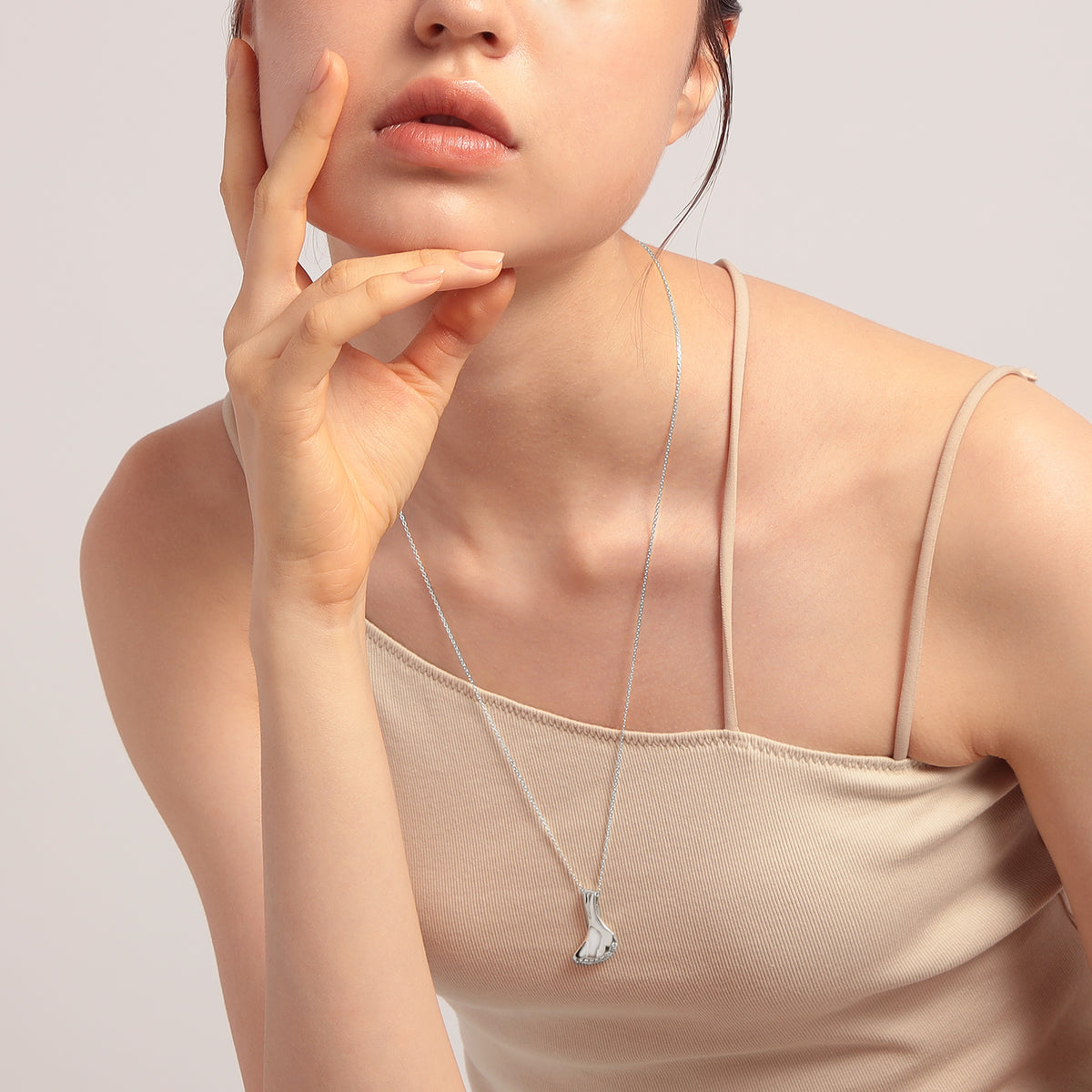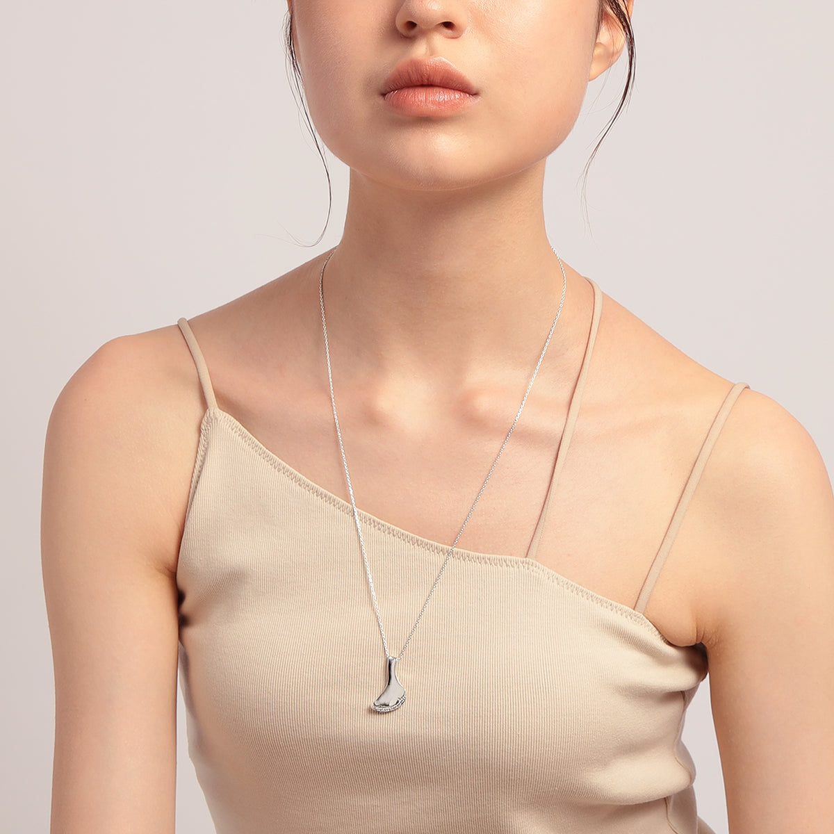 変容を司るミステリアスなさそり座の季節からインスパイアされた、モダンなローズモチーフのネックレス。薔薇は、神話の中で女神とともに生まれ、古くから人々に愛されてきたタリスマン。宇宙に浮かぶ金星の軌道もまた、その輪郭を描くといわれています。艶やかに磨かれた地金の表面は、花びらのような柔らかなカーブをつけることで、クールな佇まいの中にしなやかさを感じる仕立てに。キュービックジルコニアの可憐な煌めきが、薔薇の持つ多面的な魅力を映し出し、スタイリングに静かな美しさをもたらします。