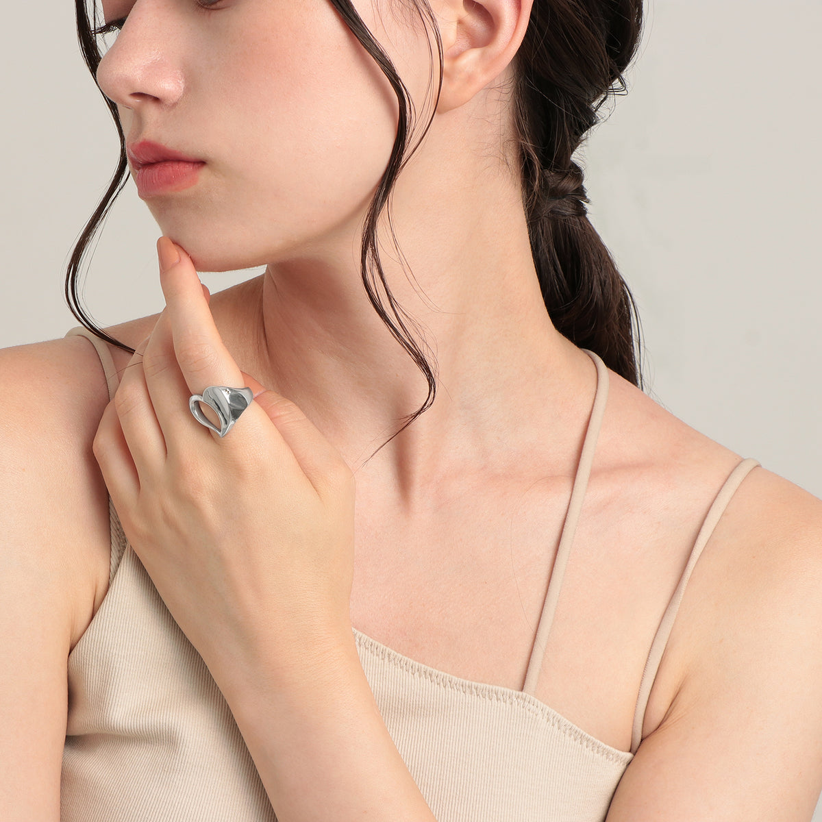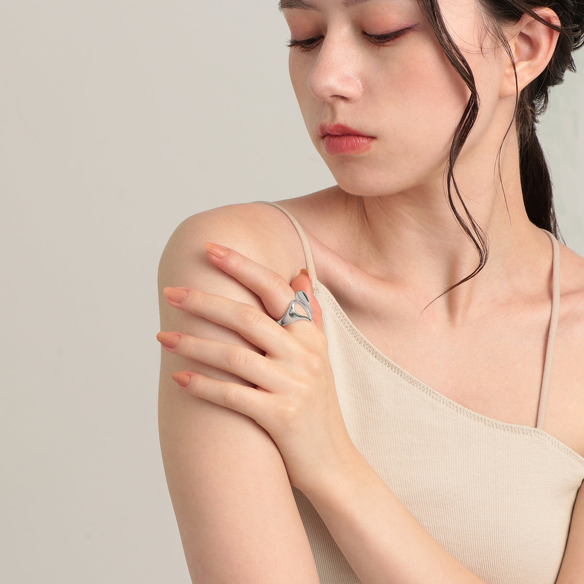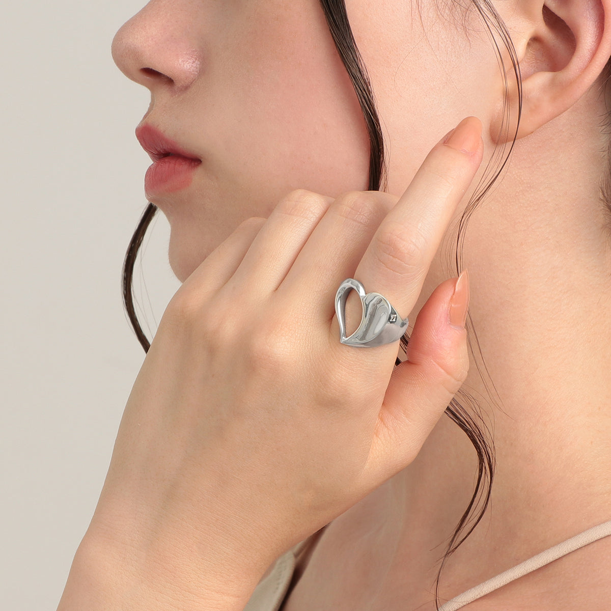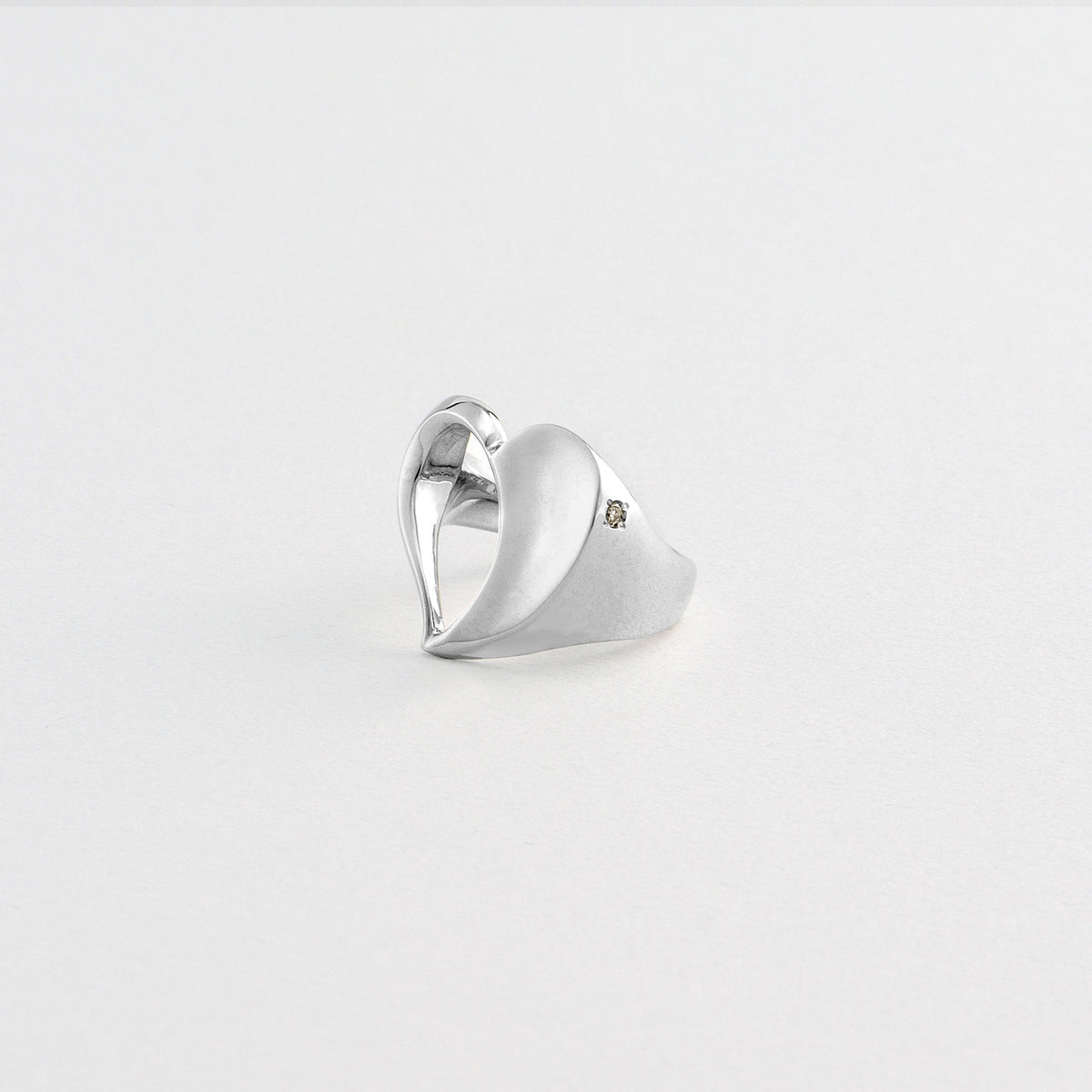 「感情」を司る水のエレメントから着想した、印象的なハートモチーフリング。 ハートモチーフの背面には、夜空に輝く一等星をイメージした煌めくブラウンダイヤをセッティング。手元を見るたびに自分だけのお守りのように寄り添ってくれます。 艶やかに磨き上げられた地金の輝きと、程よいボリューム感のクールなハートモチーフが旬のスタイリングを叶えてくれます。 指に吸い付くような着け心地の良さも魅力的。