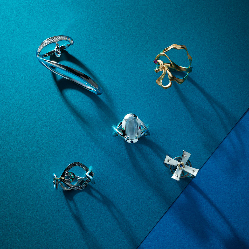 春を司るロイヤルスター・アルデバランからインスパイアされたリング。古来より富をもたらすサインと呼ばれた星のイメージを、同じく幸運の象徴として敬愛されてきた孔雀の羽根モチーフに落とし込みました。ピーコック・アイと呼ばれる、羽根に現れる魔除けの眼を印象的なブラックロジウムコーティングで表現し、新緑の季節を象徴するエメラルドと、奥行きを感じさせるブラックキュービックジルコニアを丁寧にセッティング。しなやかな尾羽のフォルムと連鎖するチェーンのイメージを交差させ、どの角度からも美しいデザインに。アクセントにあしらったK10YGパーツがリッチな輝きをプラスし、さらなる美しさをもたらします。